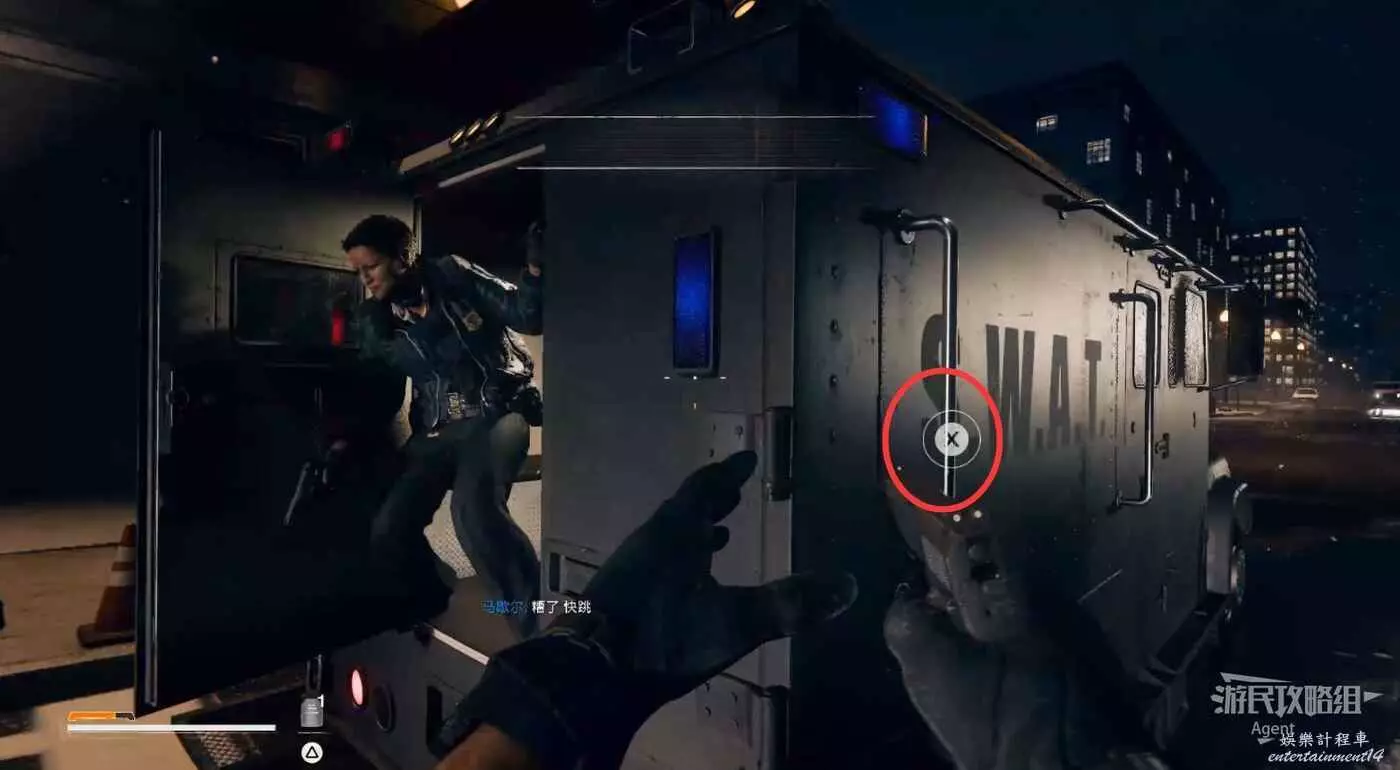 最後騎摩托撤離,出現跳躍提示時,一定要及時跳上車。