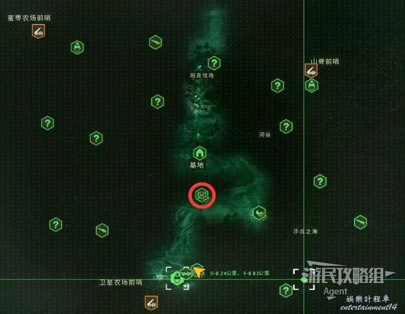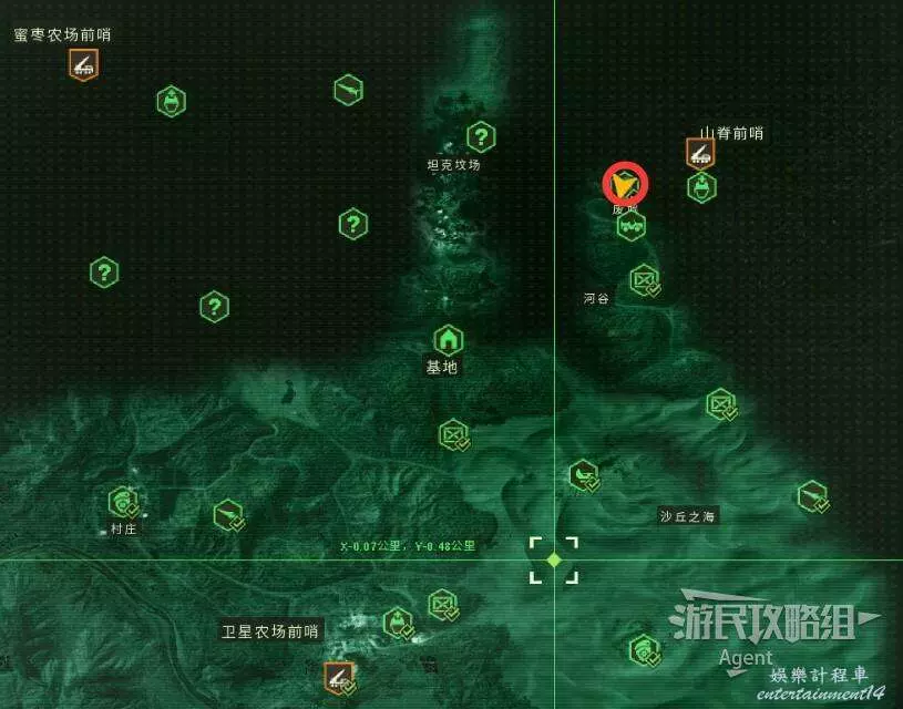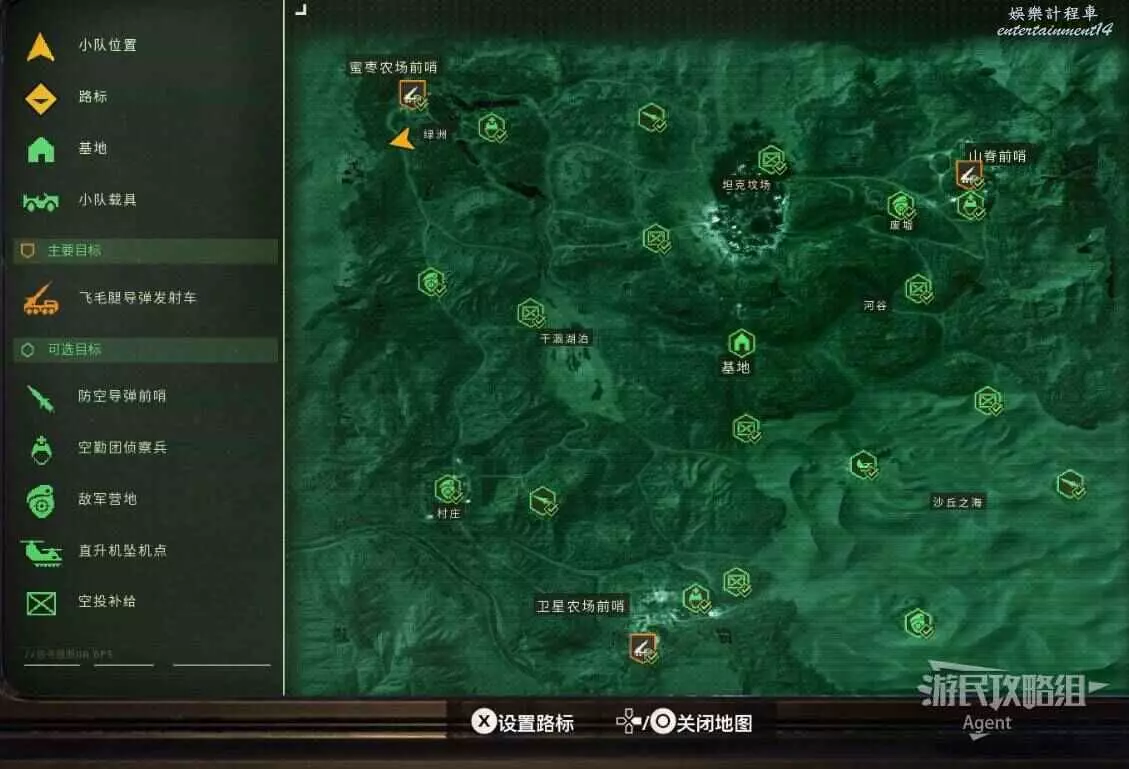 綠色的圖示是支線可選目標,建議去看看,有機會獲得強力的支援裝備。下圖是點位全清的地圖: