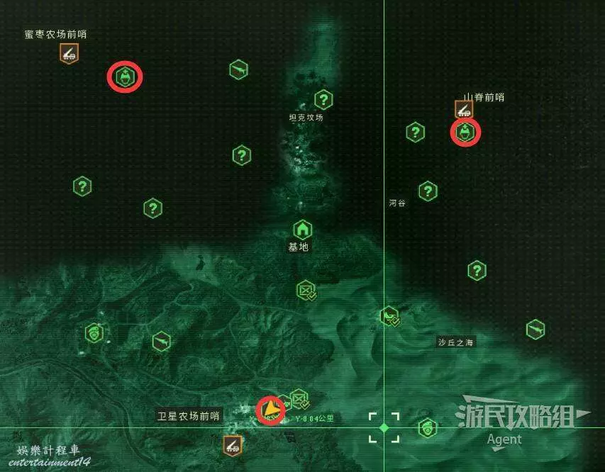獲得地圖,黃色的三個圖示是飛毛腿導彈車,是主線任務。