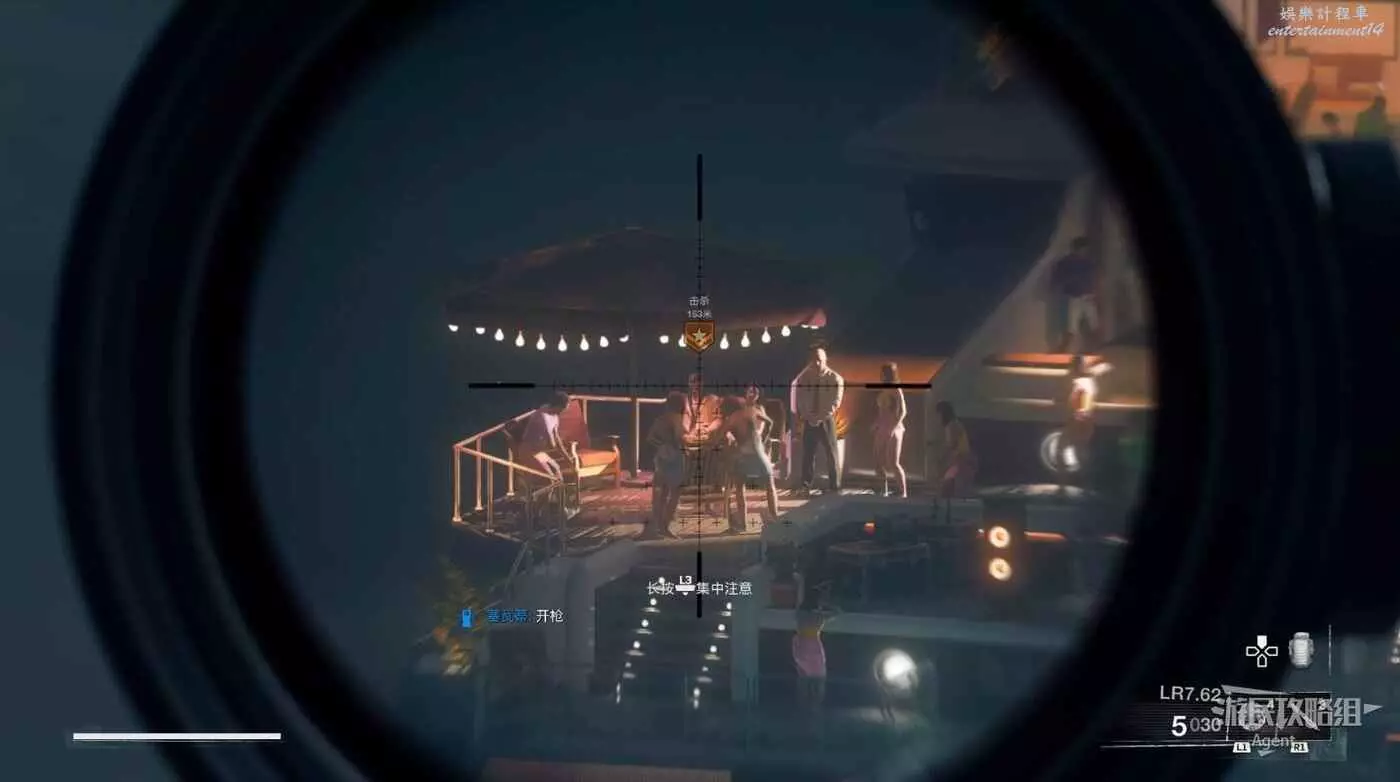 在遠處的遊艇上發現目標,竊聽結束後狙擊目標。