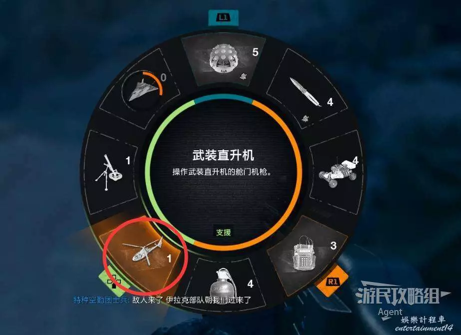 地圖上有三個防空導彈基地,摧毀全部三個防空導彈基地後返回基地,可獲得【武裝直升機支援】,特別帶勁。