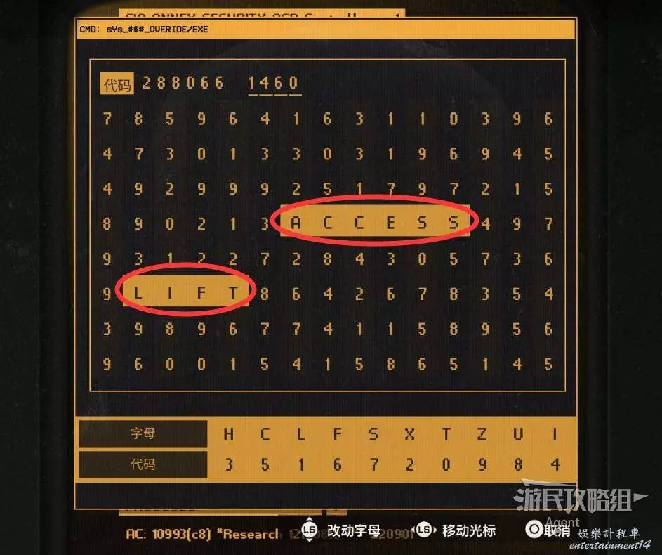 輸入密碼的原理和在安全屋裡的一樣,根據底部的字母、數位對照表,輸入對應的英文即可。