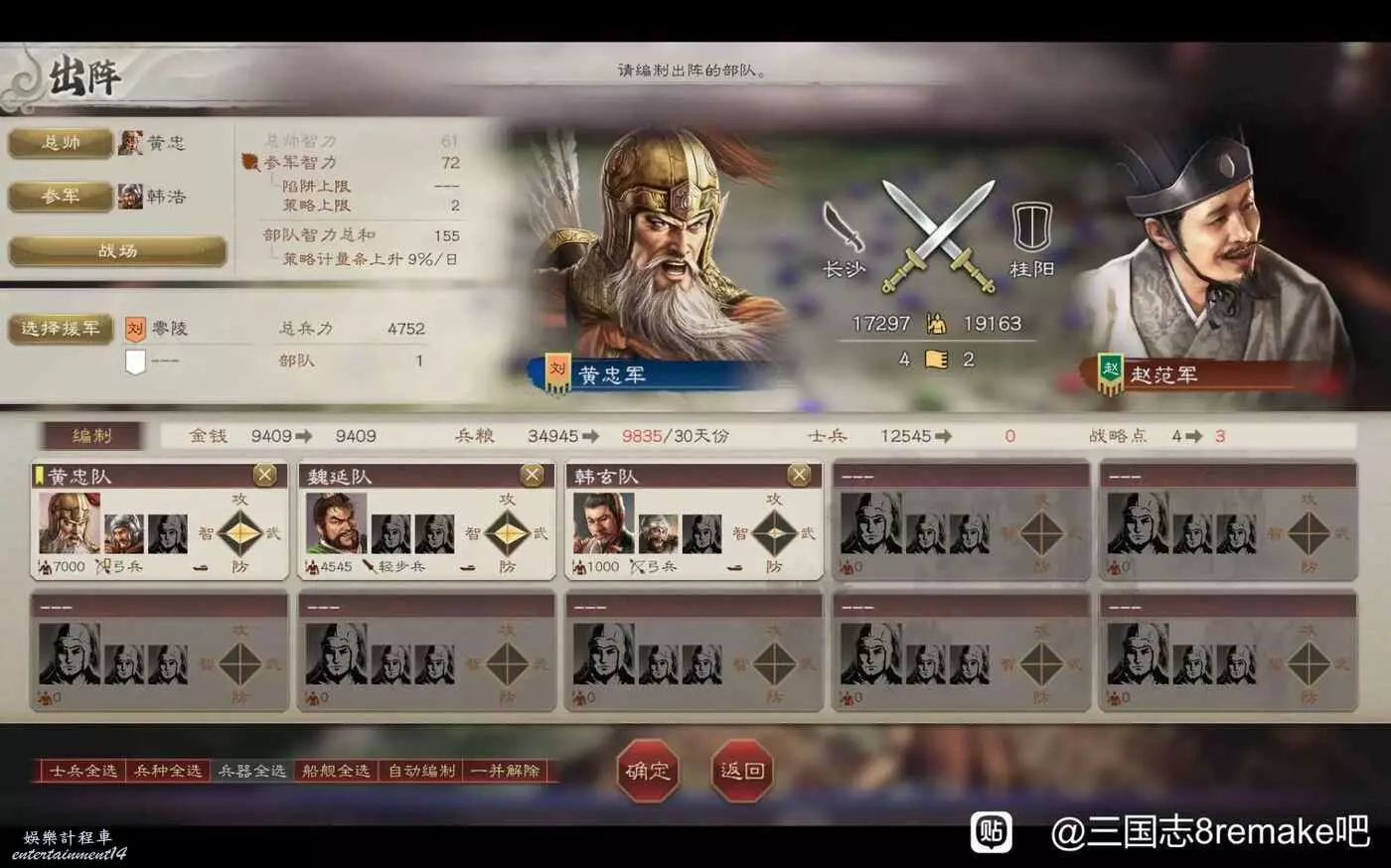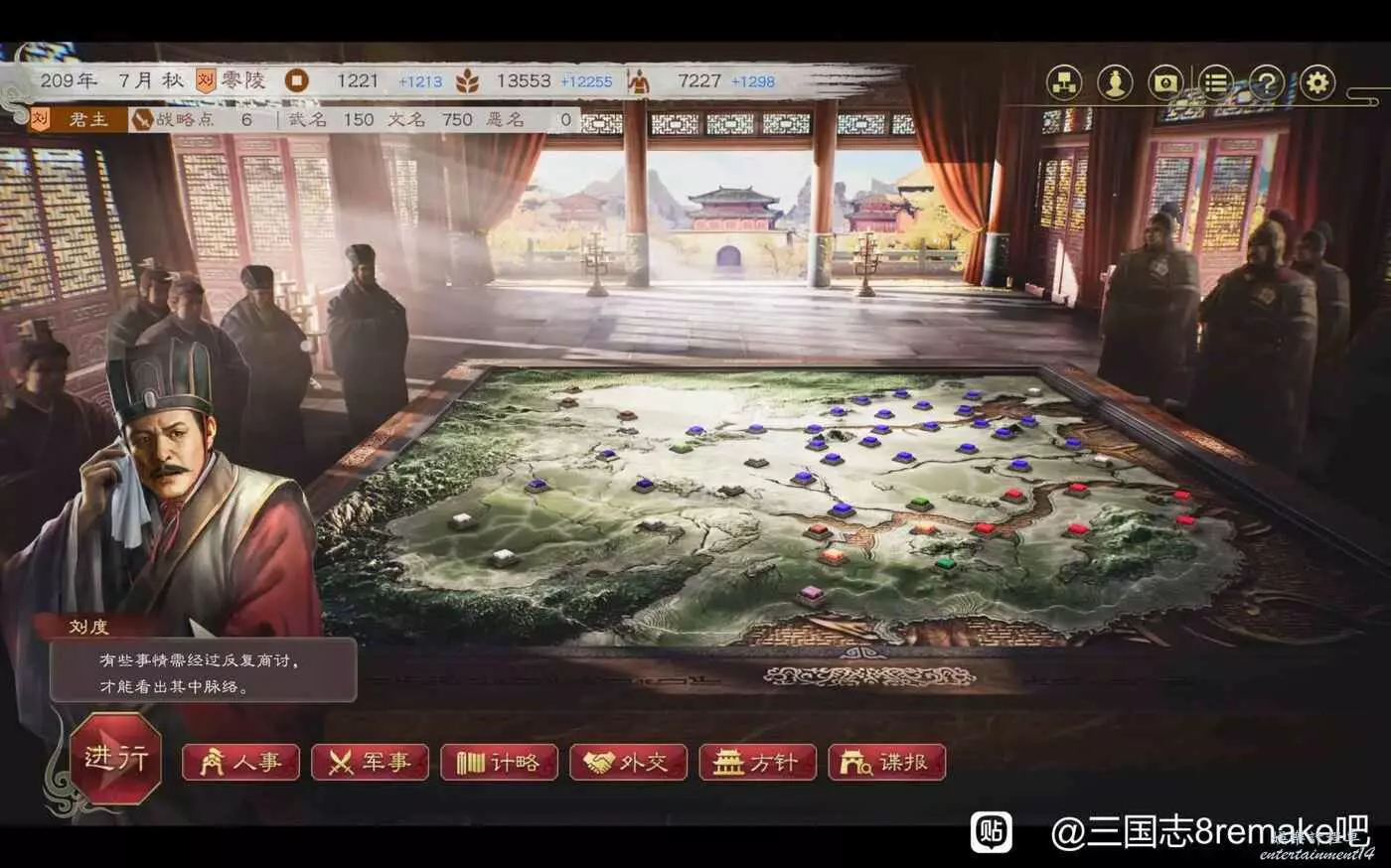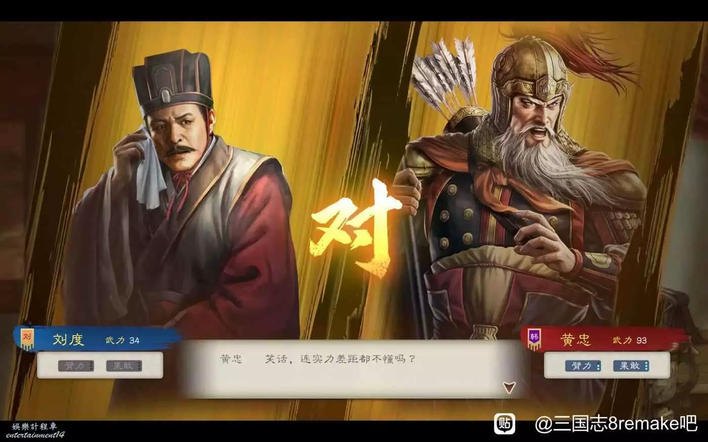 三國志 8 Remake 高級208劉度圖文戰報 25 10 月 2024-10-25 廣告 作者:哆啦AQ 來源:三國志8remake吧 三國志14玩過幾百小時,這次試試重製版8,以前沒玩過8,但是玩過13。 比三國志14的劉度好多了,刷開局可以刷到魏延,開局徵兵下就可以過了 第一回合評定結束後找黃忠韓浩,刷刷關係,沒錢就金庫裡面取,送禮對話單挑 第二回合評定直接打長沙,招黃忠韓浩,打了半天隻剩韓玄和魏延了 第三次評定,招兵,評定後去找飯手下挖人 第四回評定,拿下貴陽,除了找飯都招了