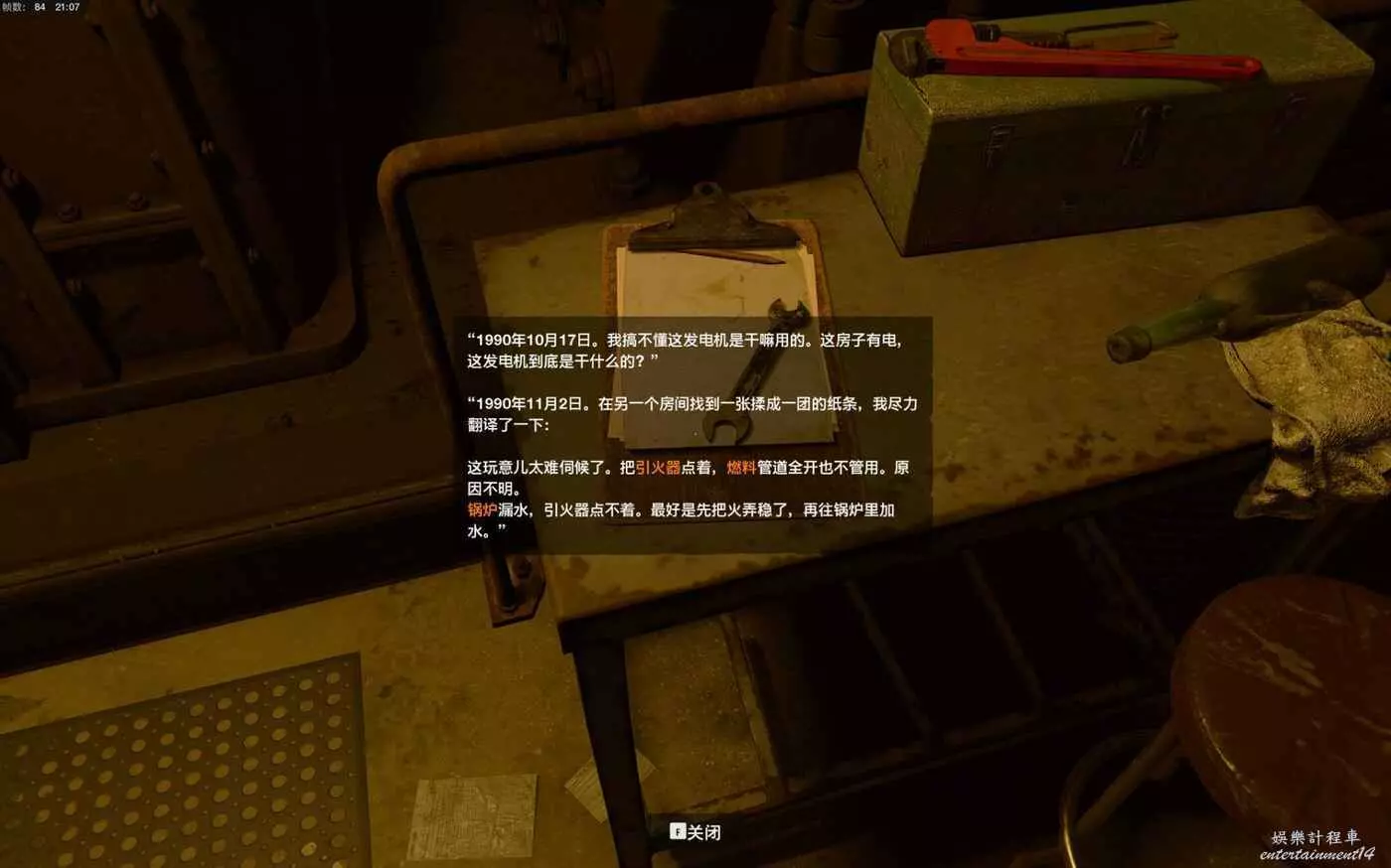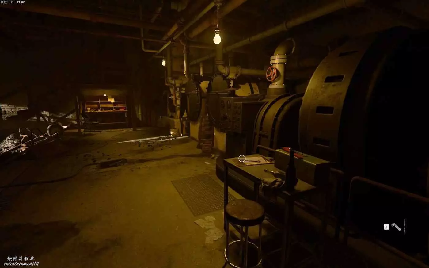 2.先不要進入地下室,由安全屋一樓進入鍋爐房,根據提示按順序先關閉燃料及加水閥門,然後再旋轉燃料閥門(進度一半),接著按點火器,然後旋轉水閥(聽到提示音,點火器亮綠燈即可);