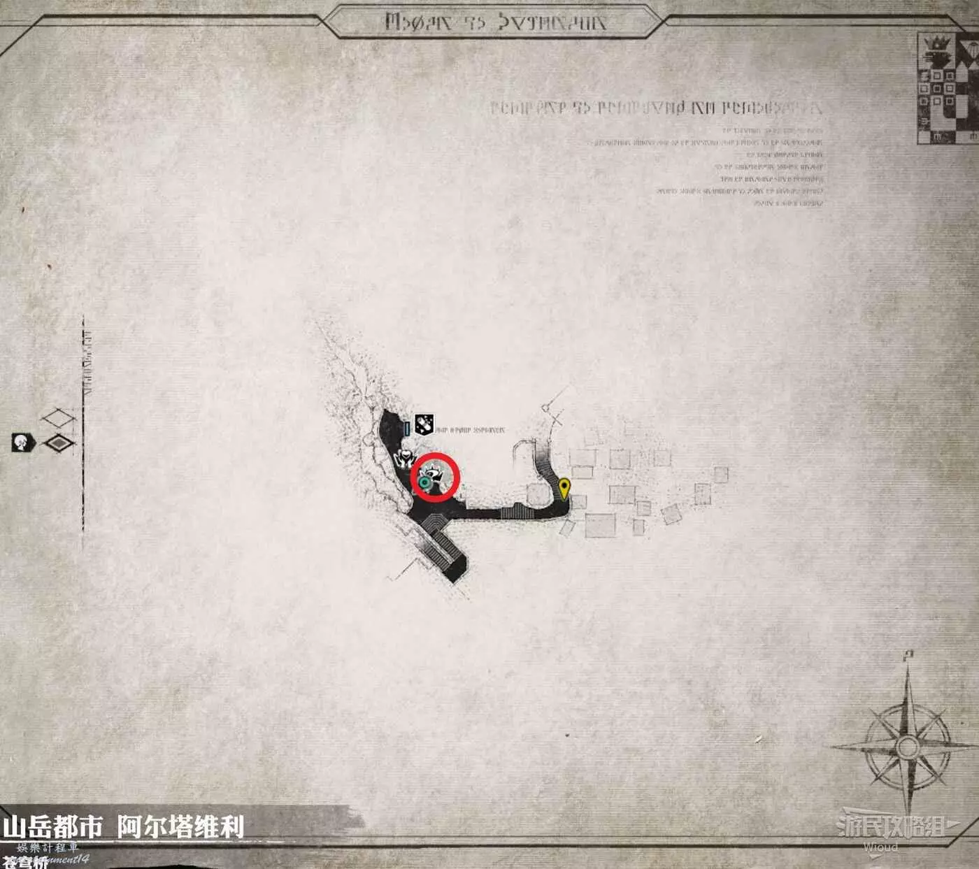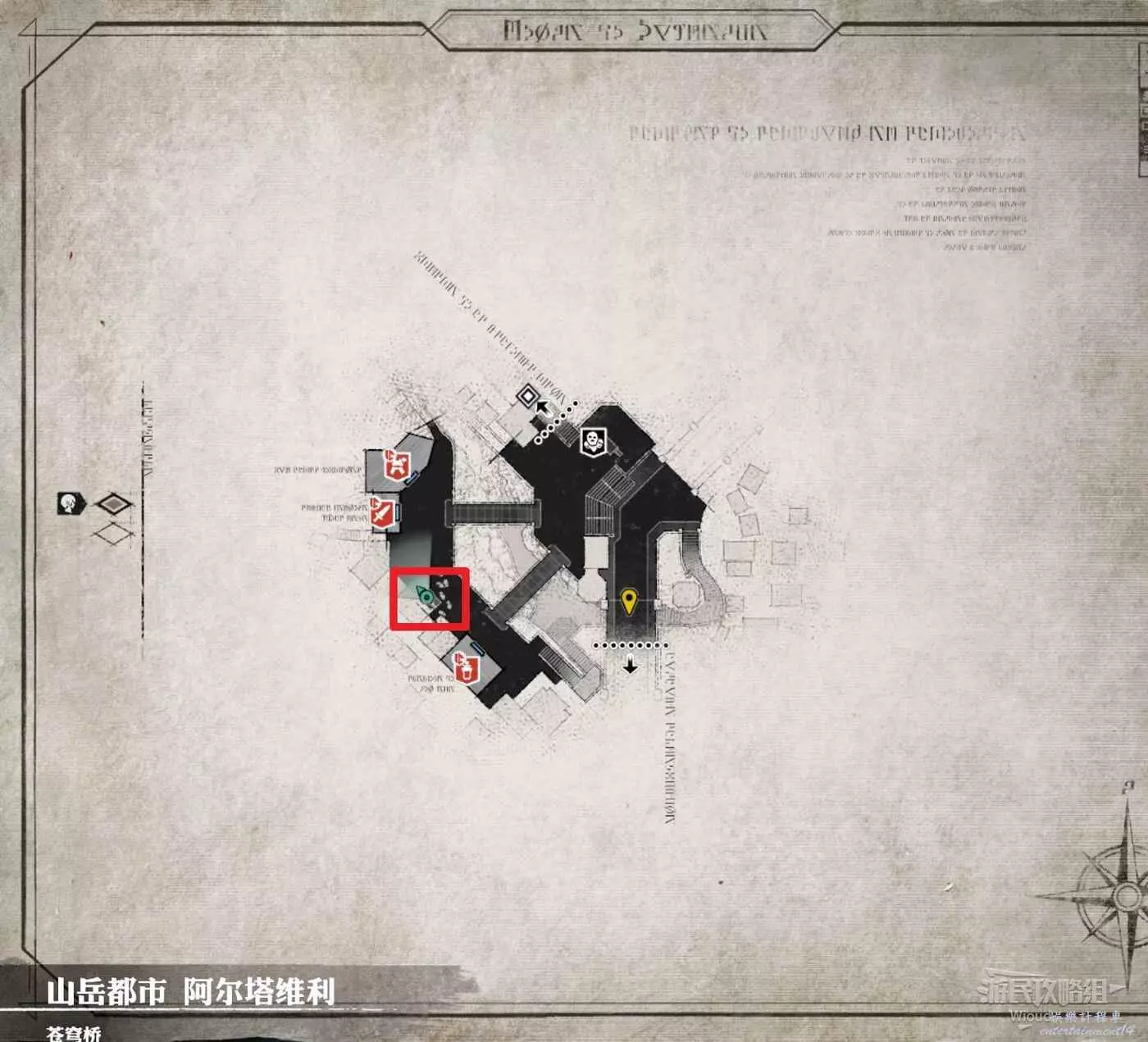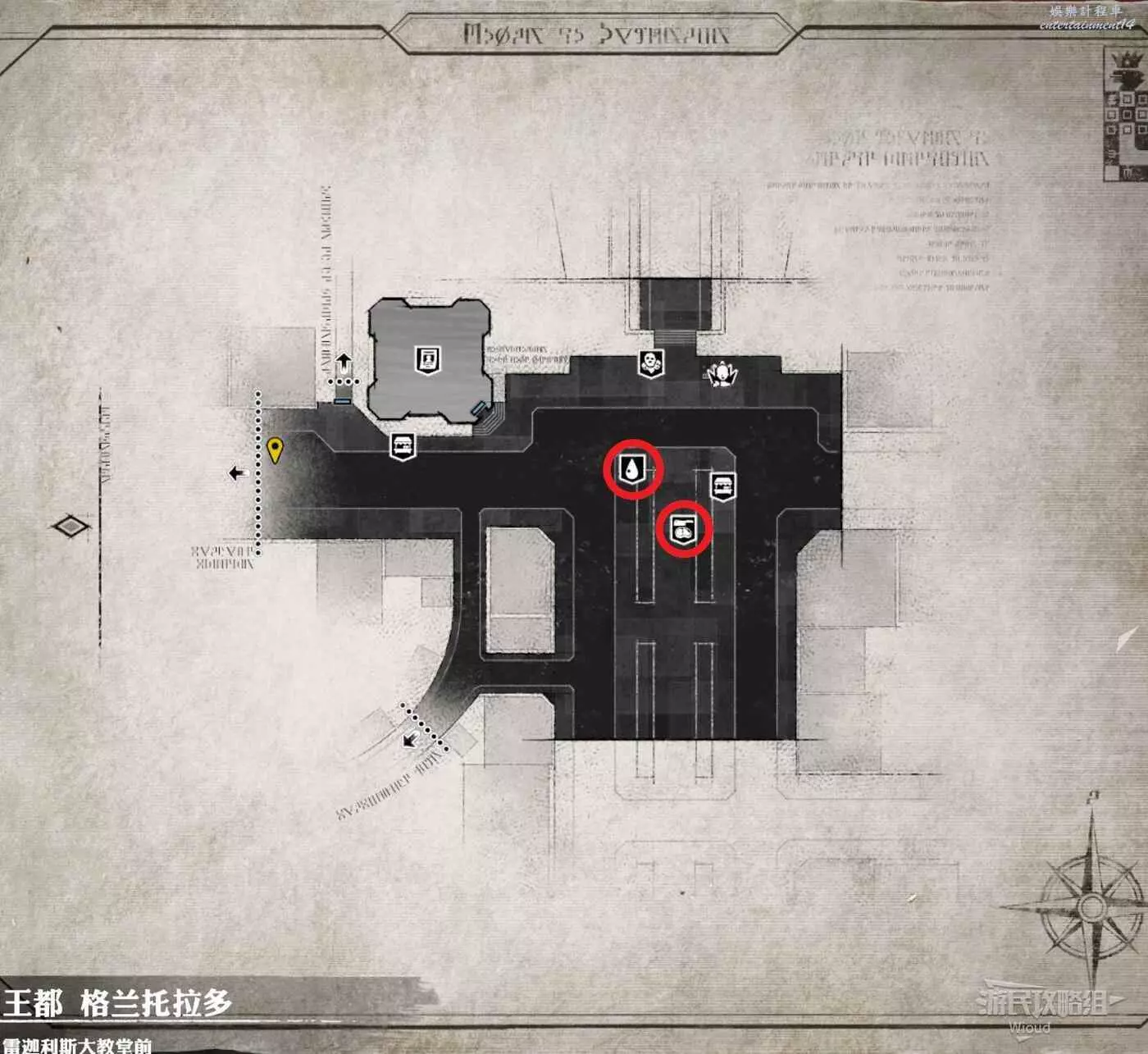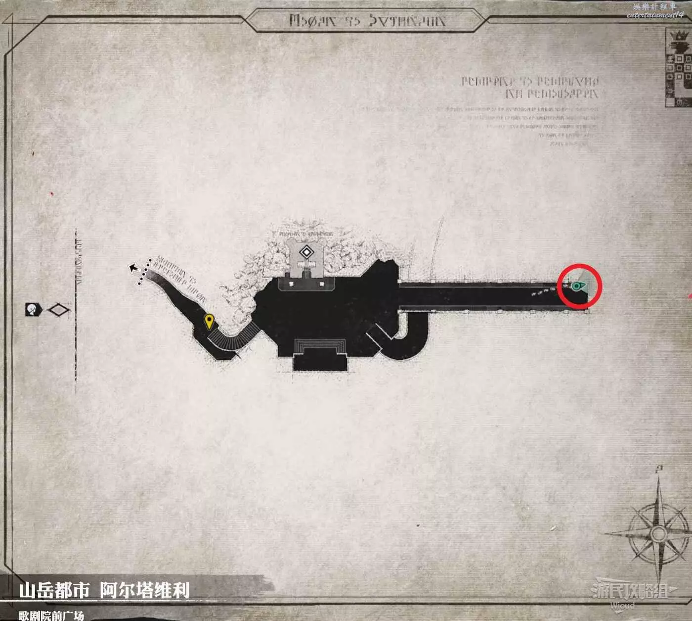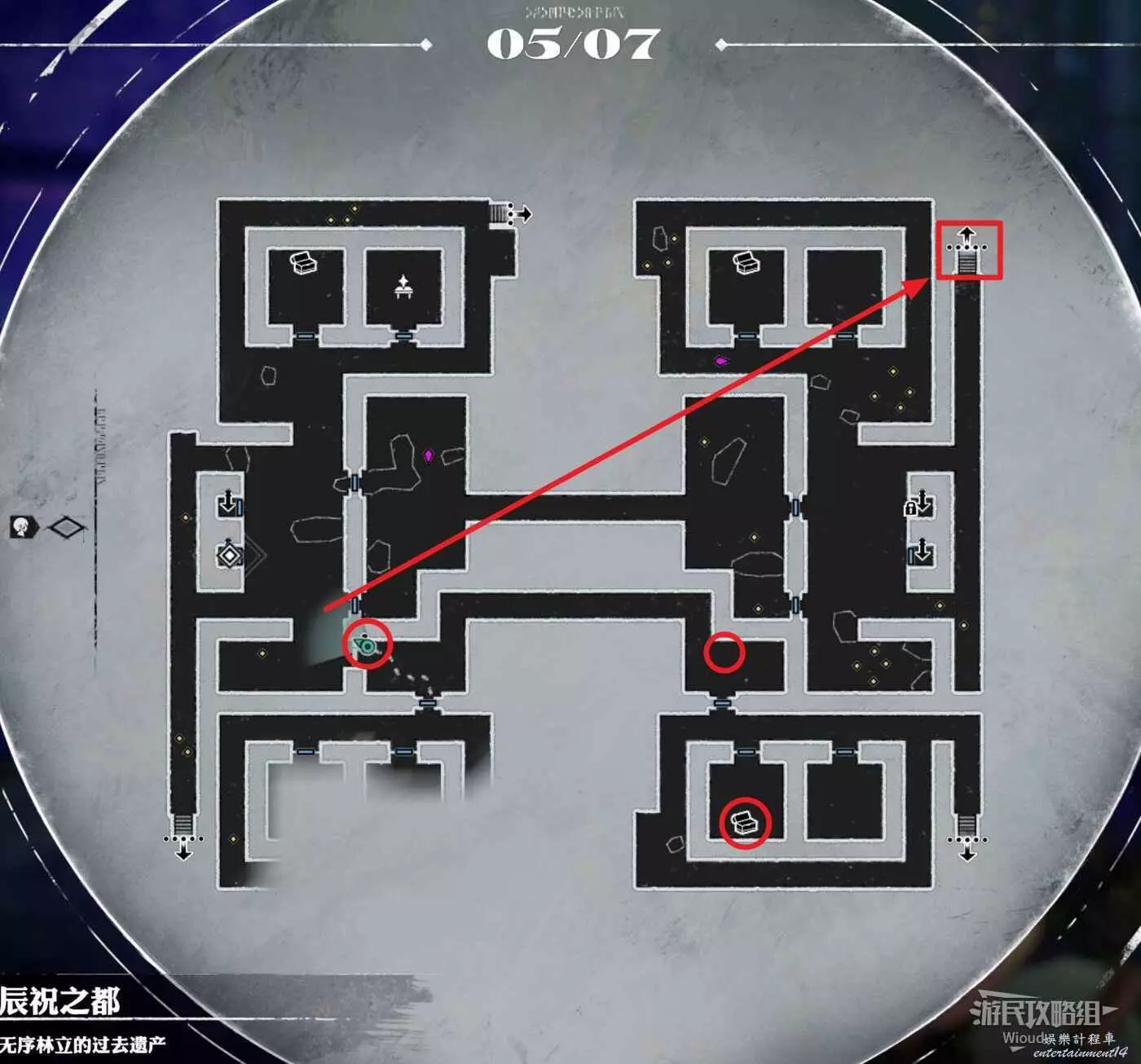 地圖左下角與右上角的寶箱都可以直接拿,右下角需要通過一個沒有指引的樓梯走過去,路線也在下圖展示出來了;