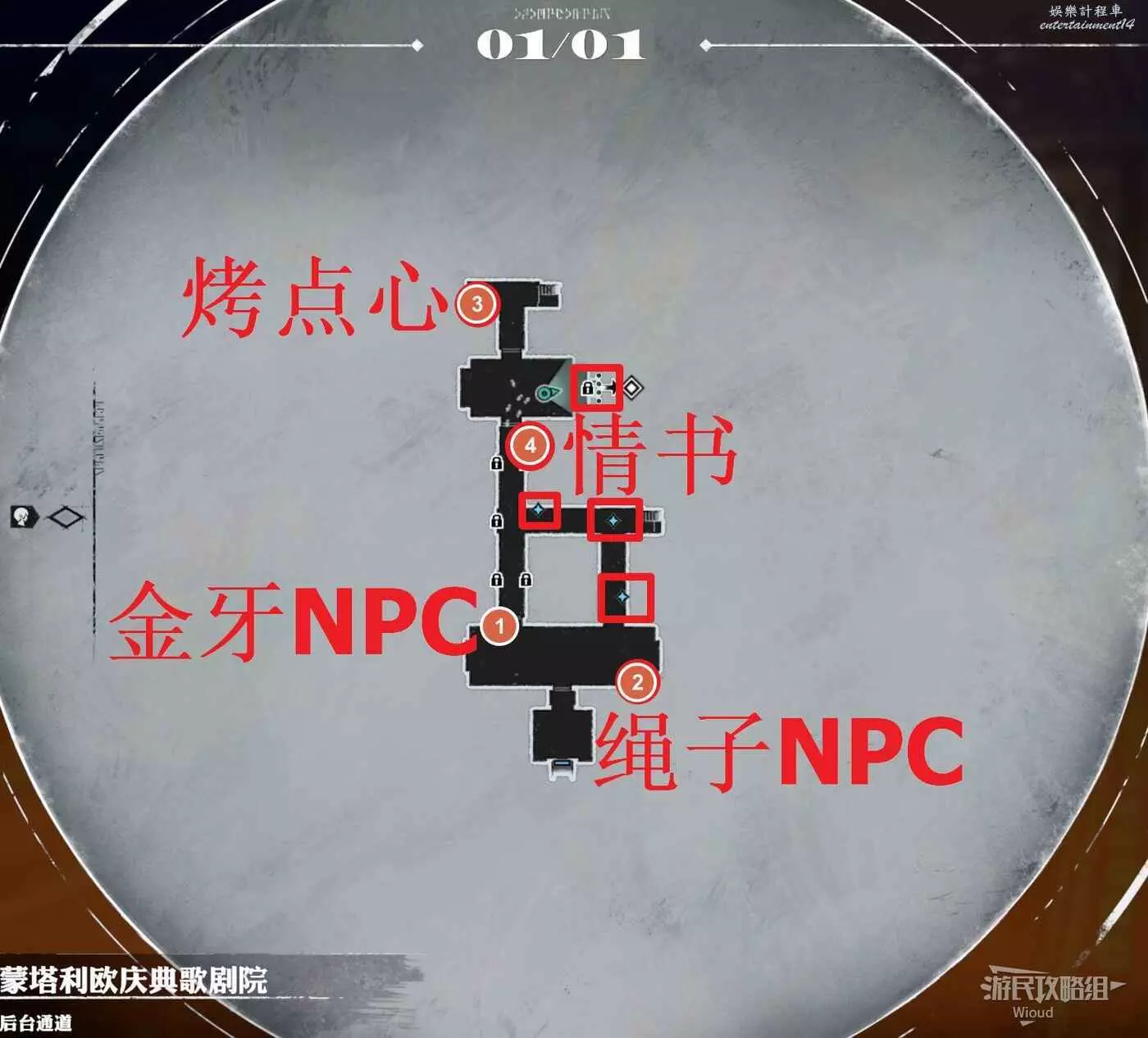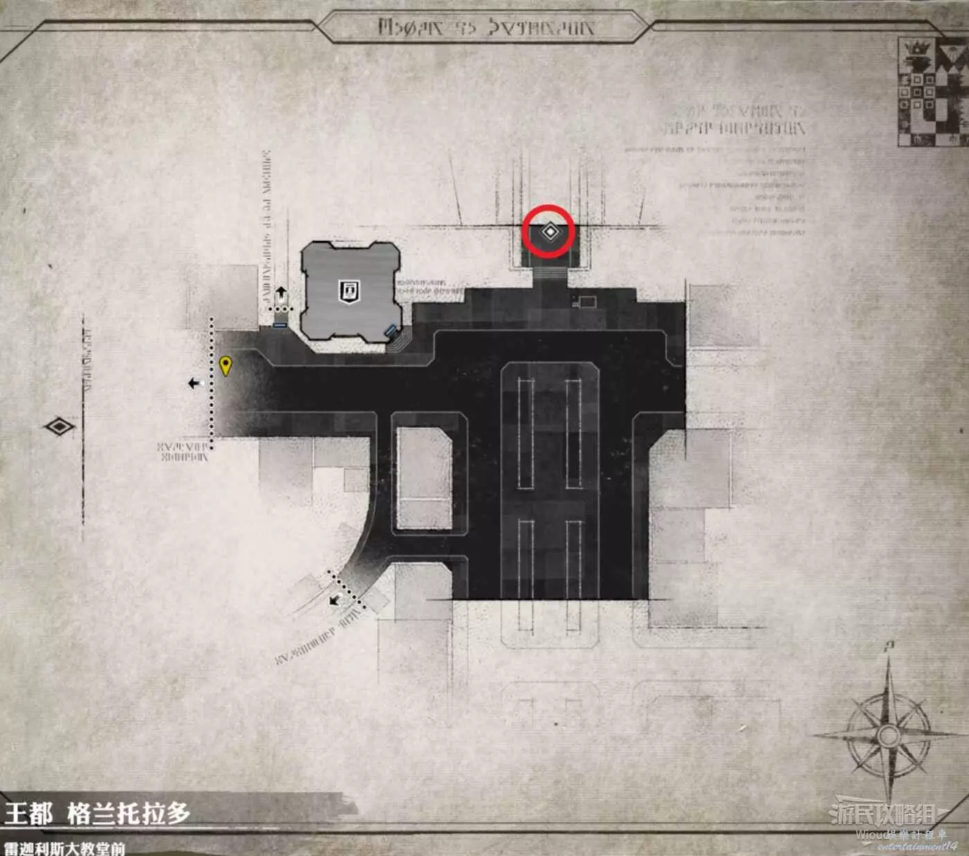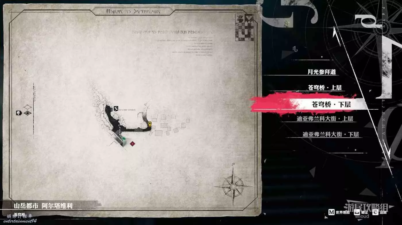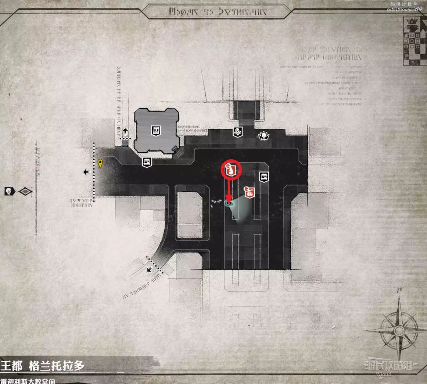 地圖左下角與右上角的寶箱都可以直接拿,右下角需要通過一個沒有指引的樓梯走過去,路線也在下圖展示出來了;