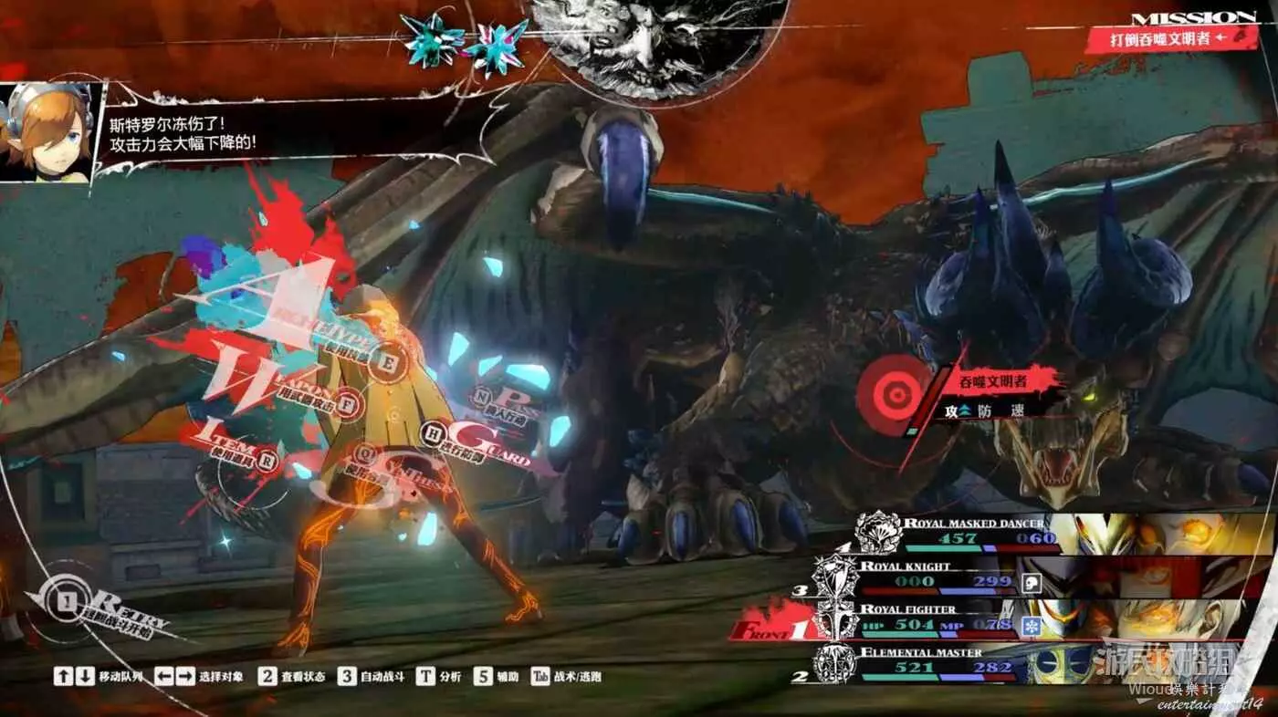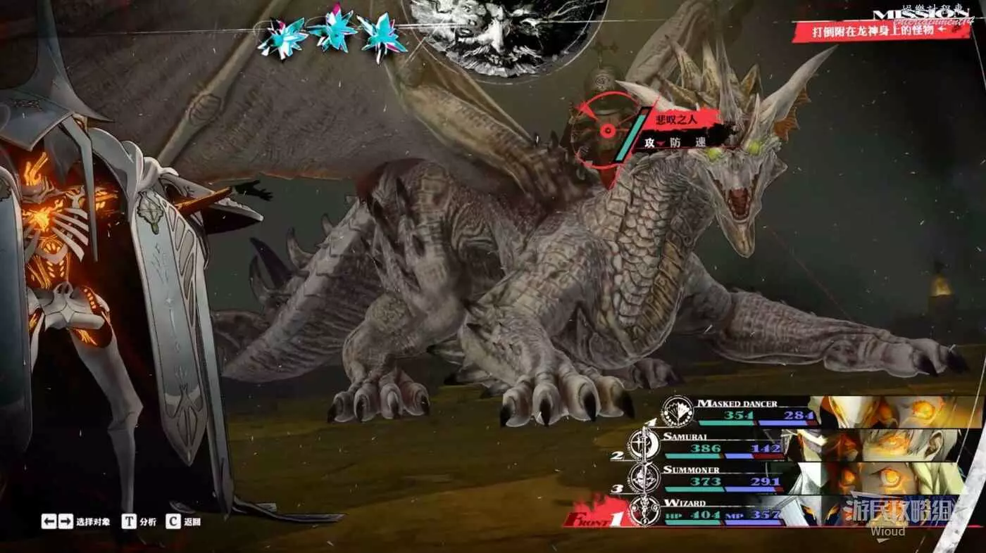 走到塔頂中間觸發劇情,文明吞噬者完全免疫【火】屬性傷害,戰鬥前期用騎士嘲諷可以有效的吸引龍的仇恨。