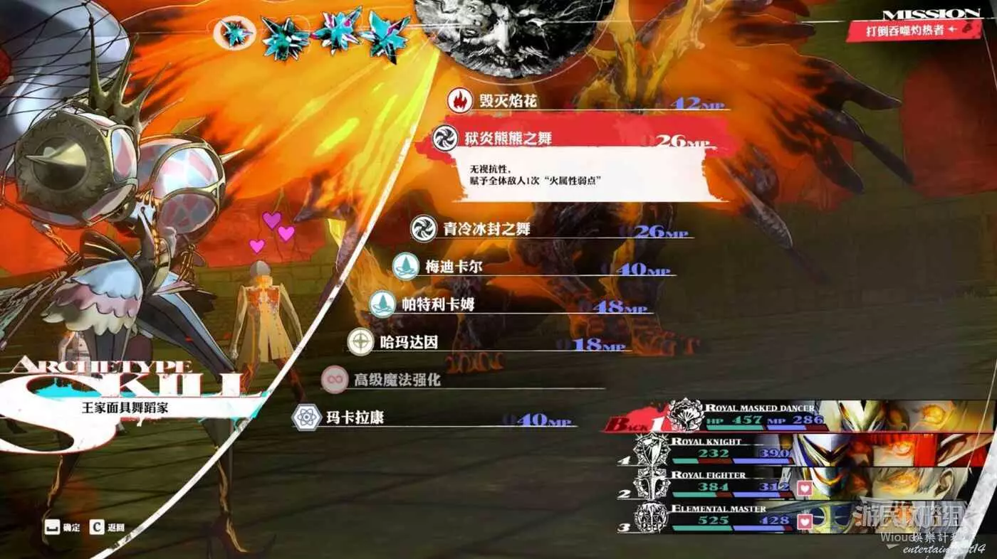 王家面具舞蹈家能解鎖技能【獄炎熊熊之舞】,因為王家舞蹈家必須得練小丑,還能繼承技能【瑪卡拉康】。