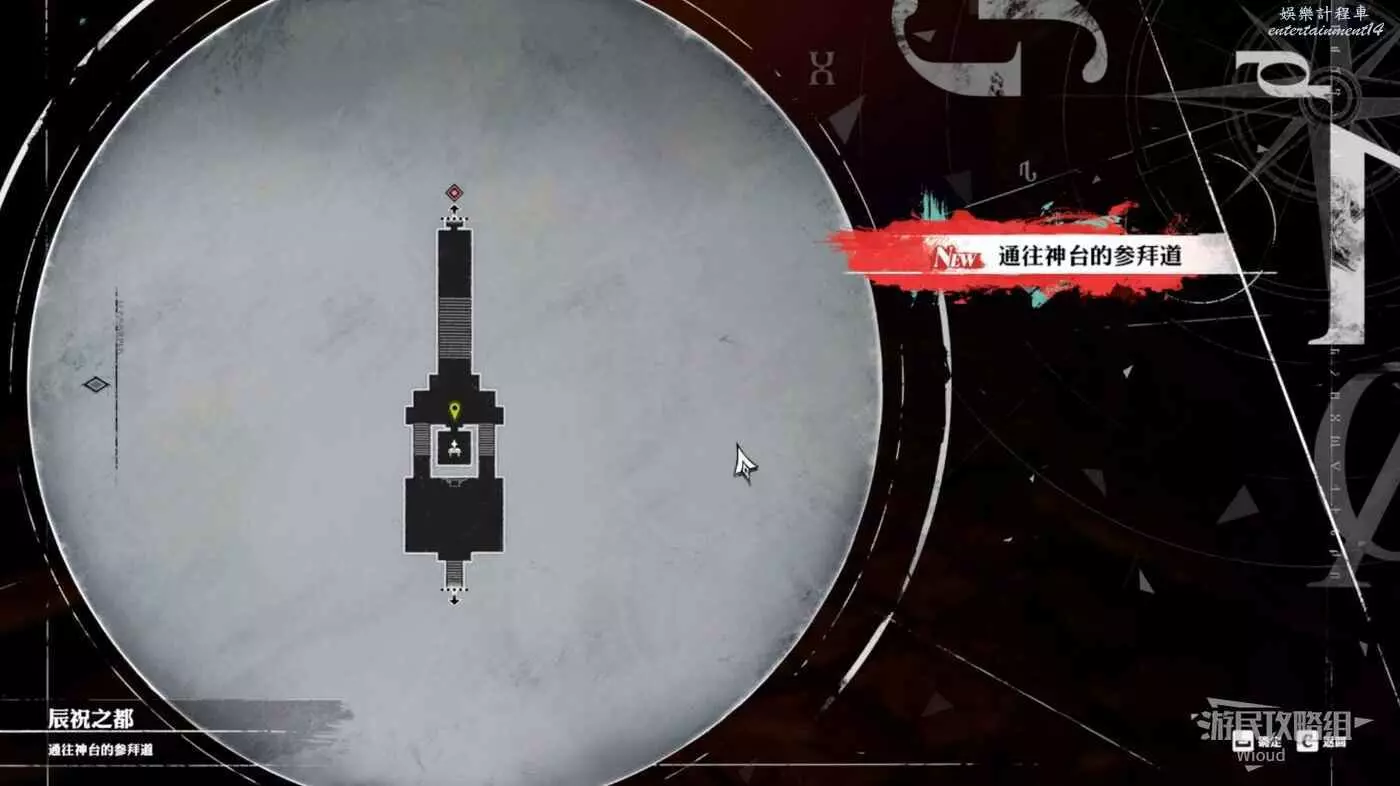 樓梯間沒什麼需要注意的,一直走到最底層,中間會觸發幾個壁畫的劇情,如果此時回到迷惘之路再次與壁畫互動也會有新對話,走到最底層進入一個新的大型區域【辰祝之都】。
