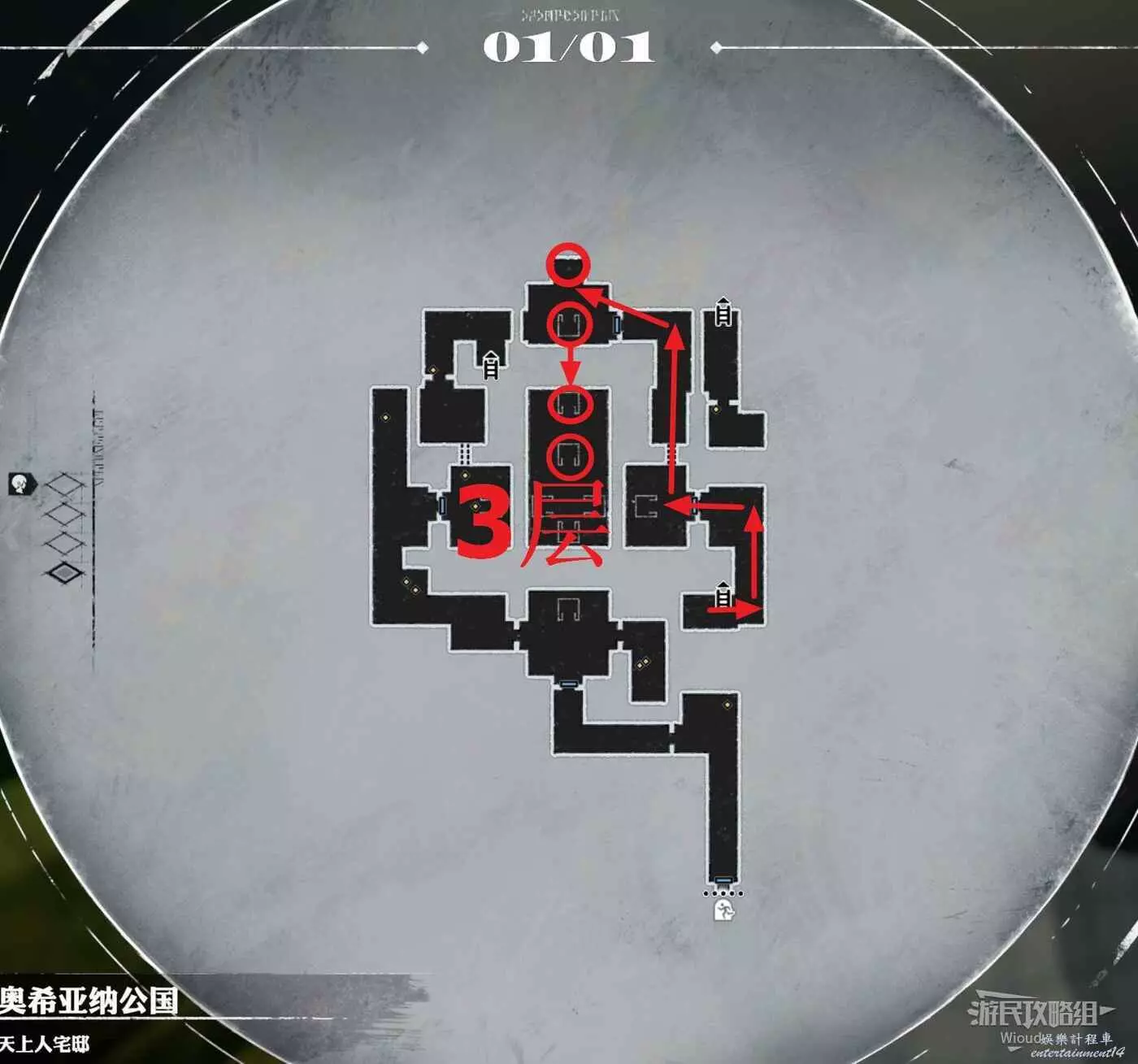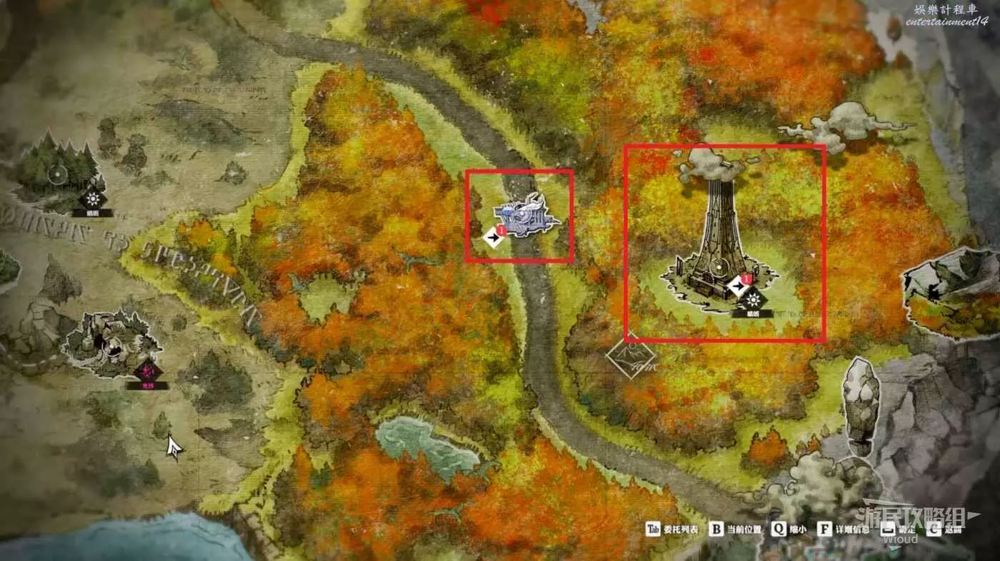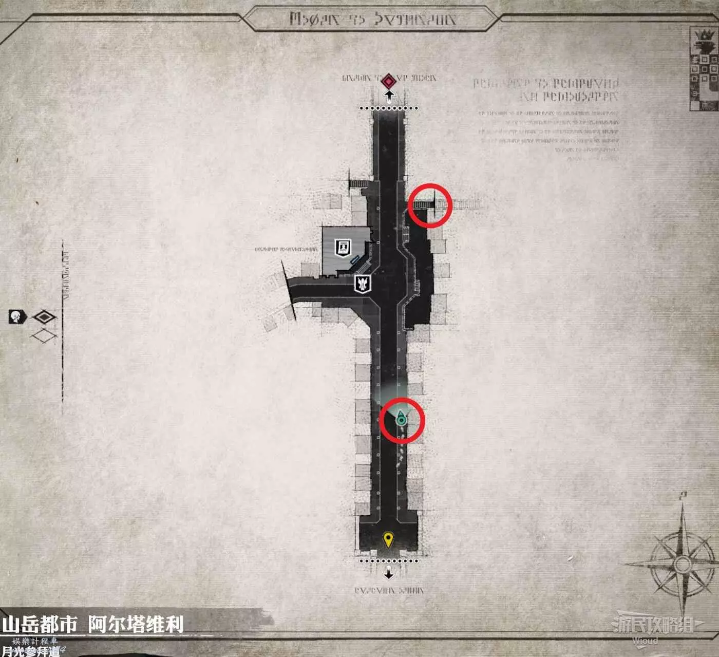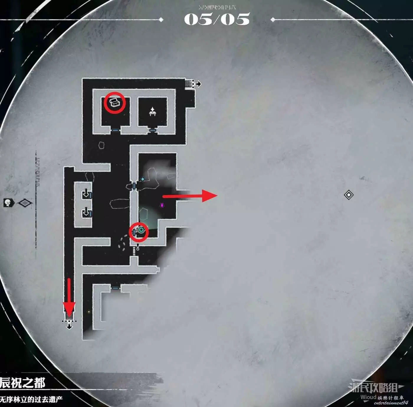 這張地圖同樣沒有機關與複雜路線,將倆耳人全部幹掉後,拿完所有藍點與寶箱去中間的房間觸發劇情即可。