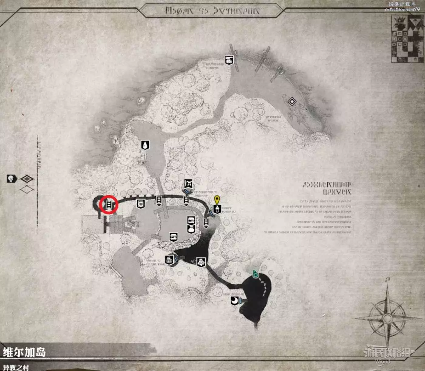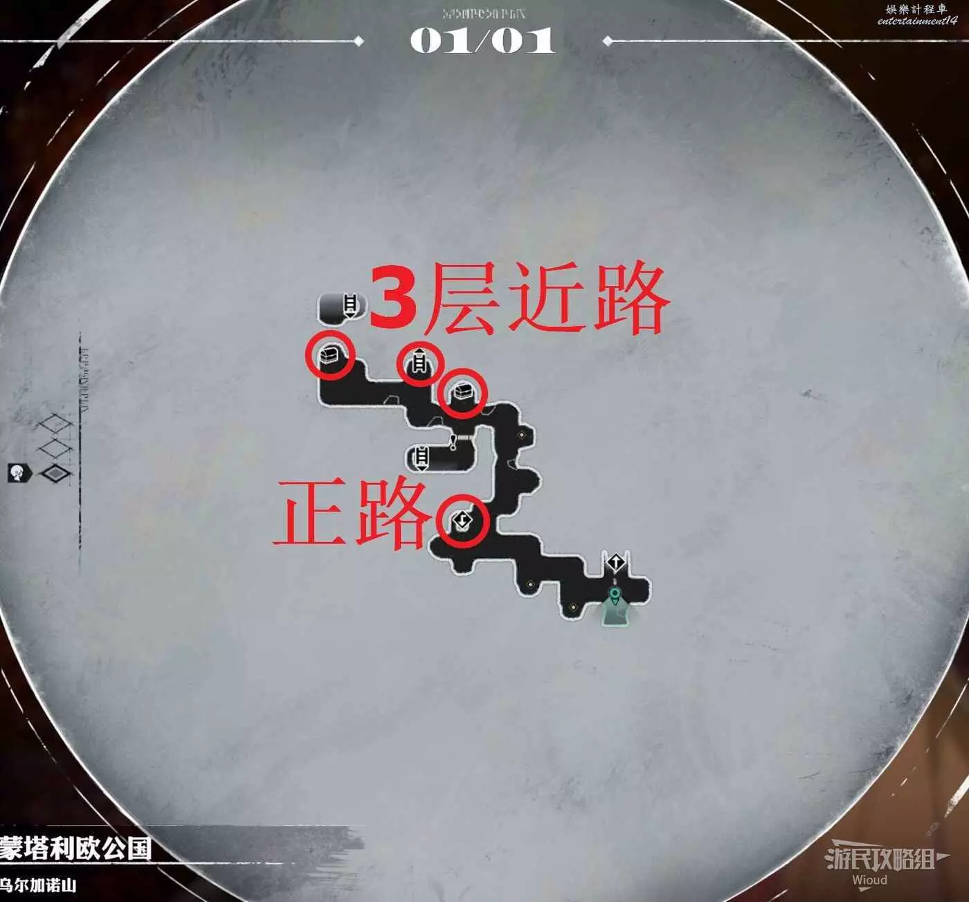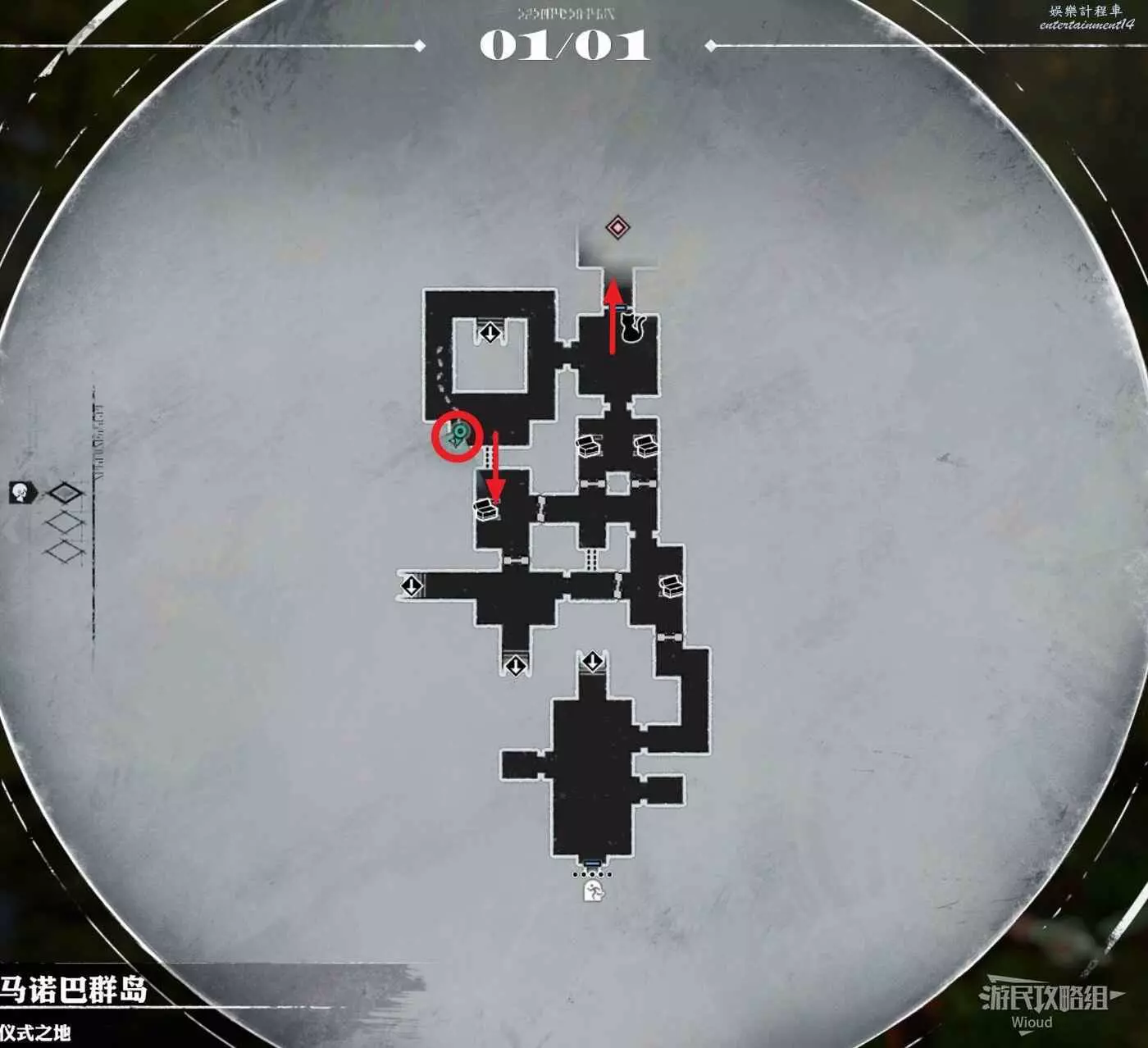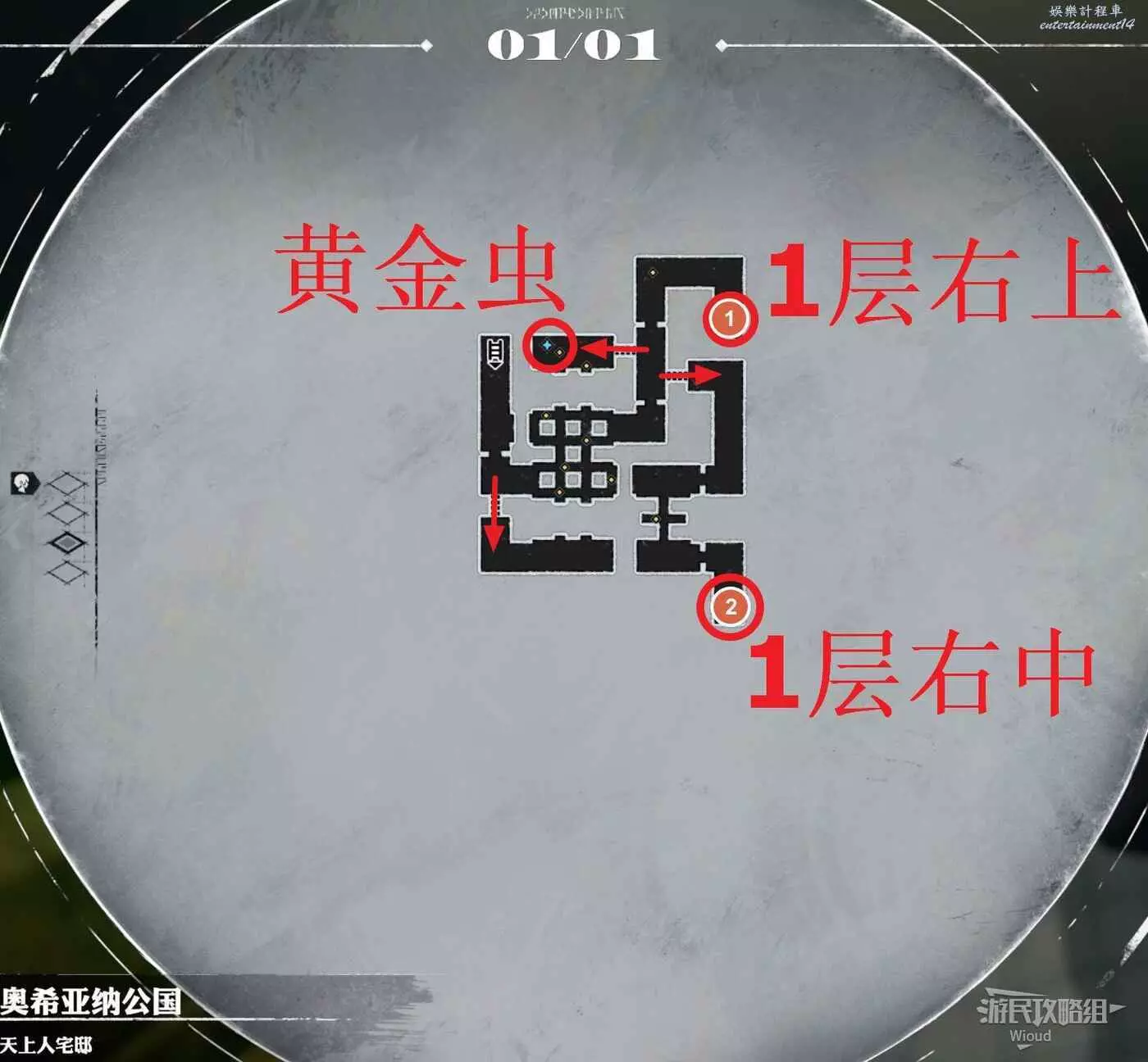 這張地圖同樣沒有機關與複雜路線,將倆耳人全部幹掉後,拿完所有藍點與寶箱去中間的房間觸發劇情即可。