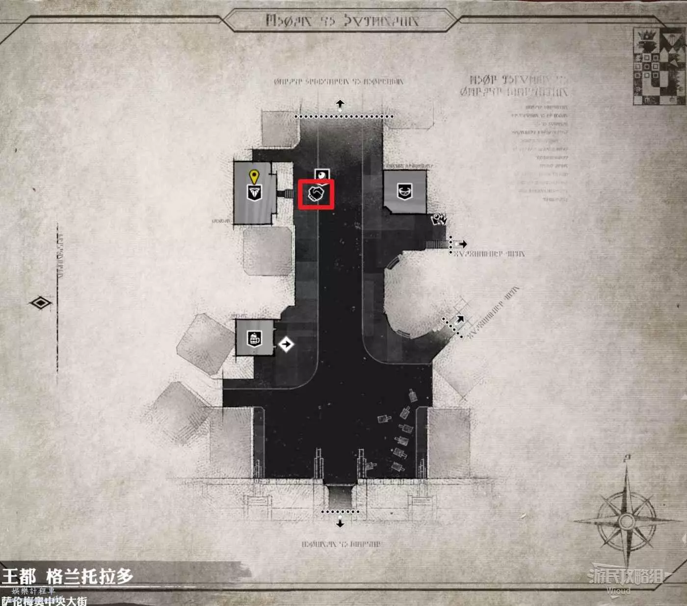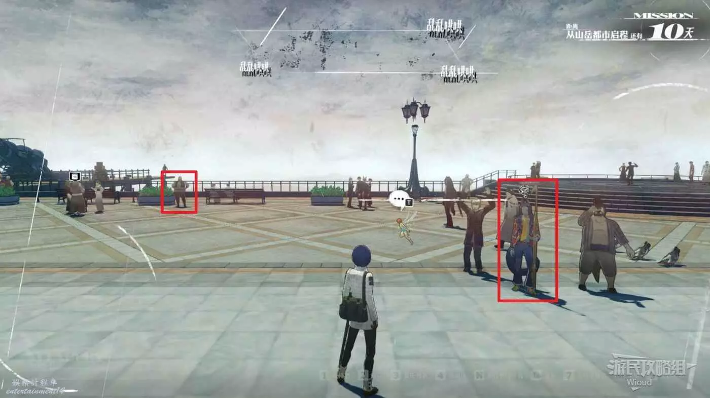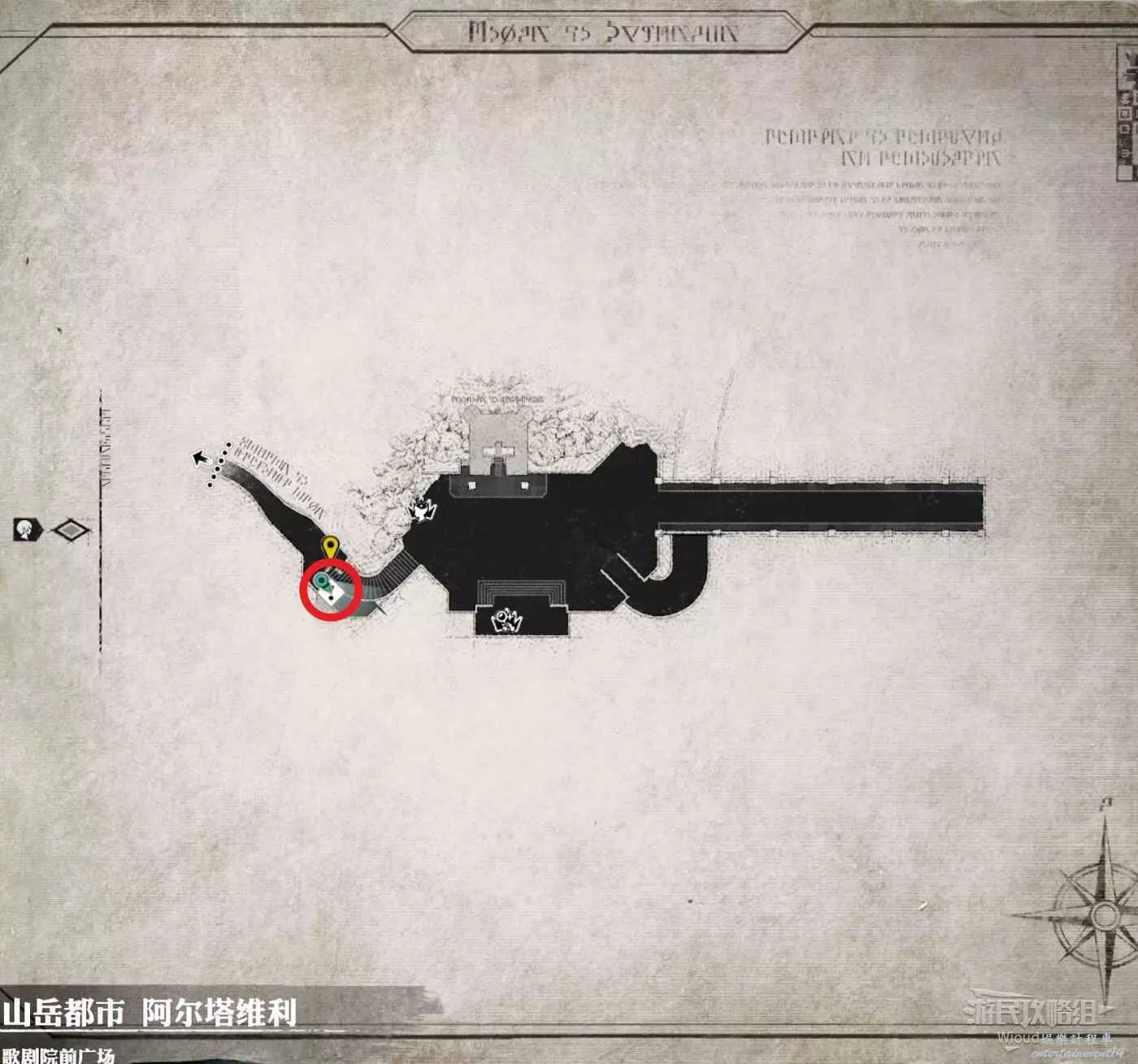 通過【過去遺產】左側的電梯進入【城市街道】,先往地圖左上角樓梯口走。