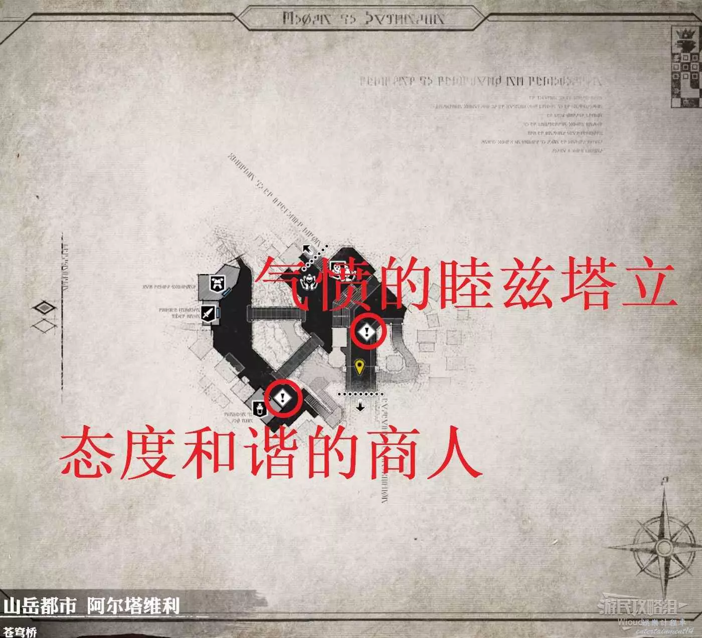 爬艾丁身後的梯子到2層,鷹雕像後方有三個說話的NPC,在他們旁邊。