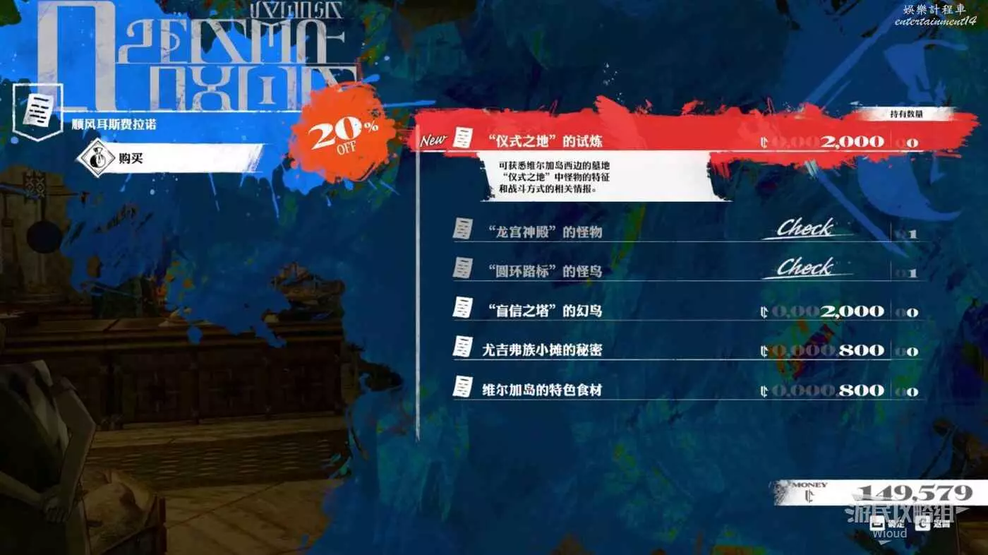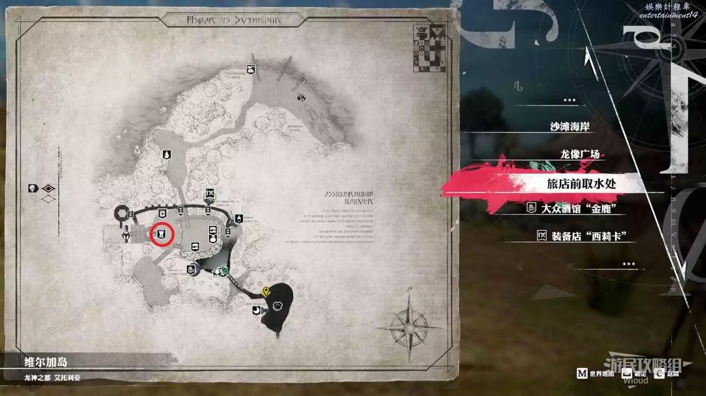 去維爾加島的酒館找順風耳購買所有新情報,順便去藥店等地方補充一下補給完成前期準備。