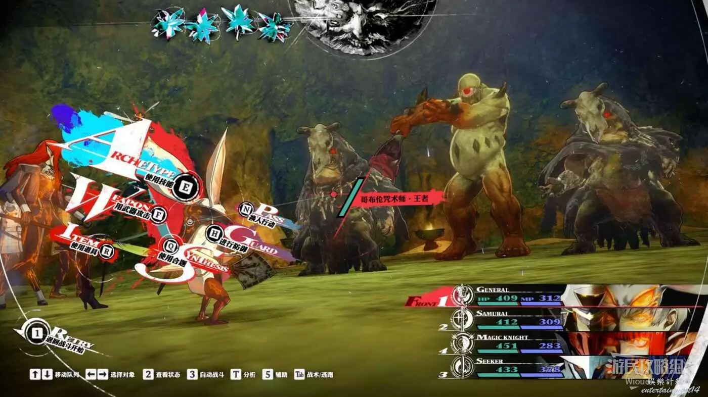 當看到獸人強者使用吼叫增加了回合行動次數,且一回合吼叫了三次鎖定玩家等操作時將所有角色移動到後排進入防禦模式,獸人強者的下一回合絕對是群體攻擊,然後繼續重複迴圈,直到將獸人強者擊敗。