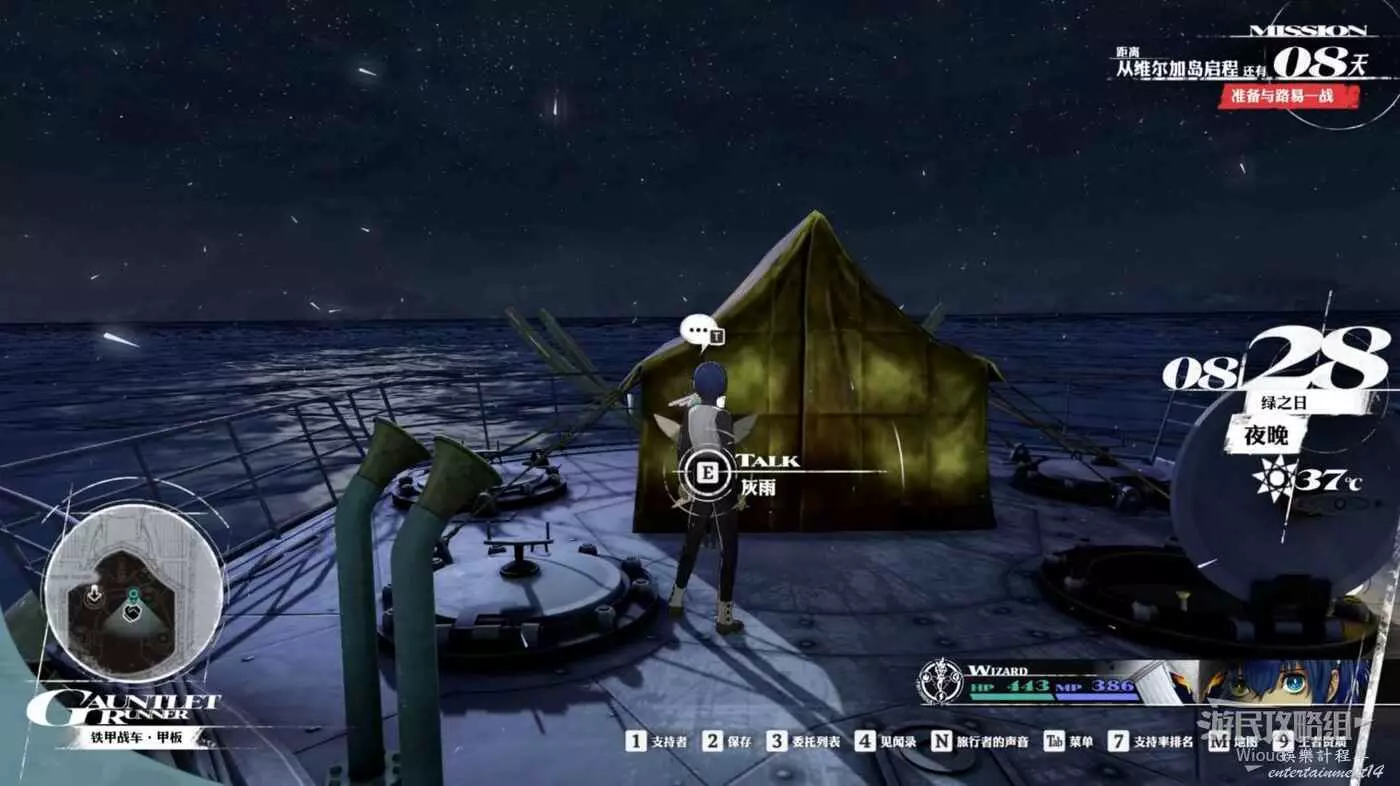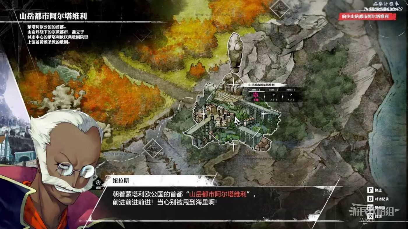 再次進入一長段的劇情,完事跟紐拉斯對話正式出發前往【維爾加島】,後面總共要在鐵甲戰車上待3天,也是我們提升王者資質的最好時機。