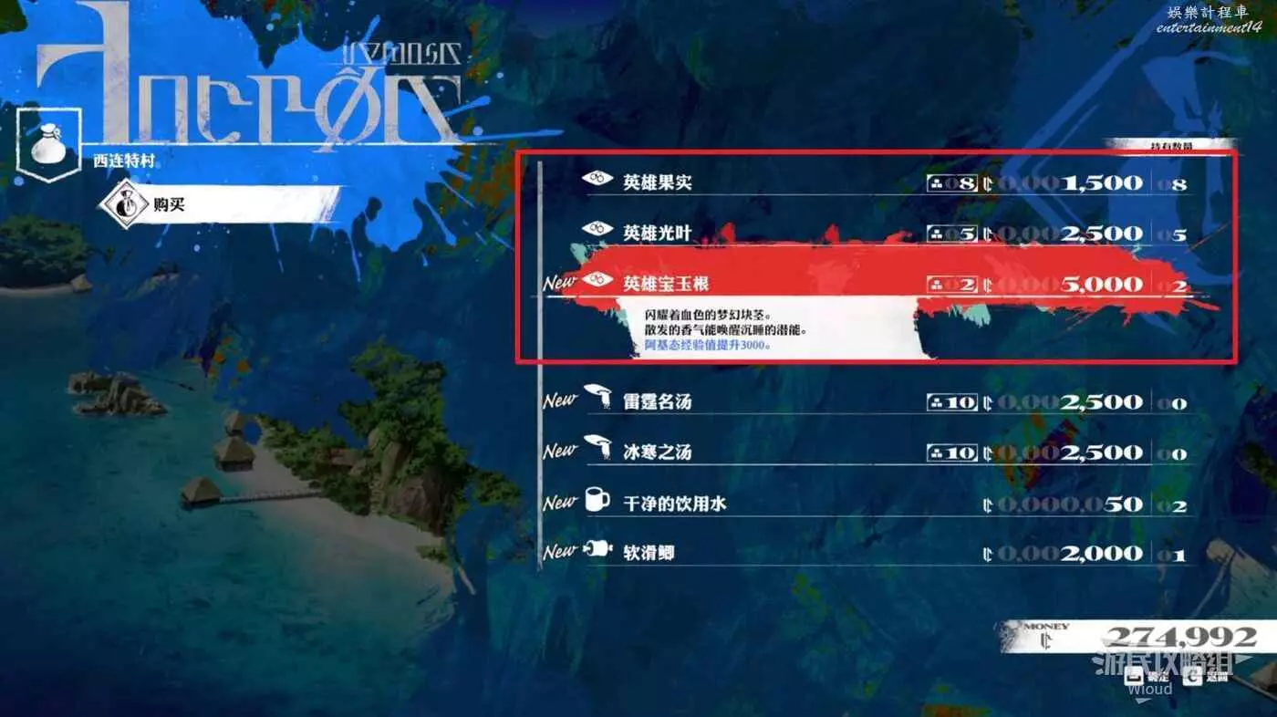 老闆右側有黃金蟲能拿,19號才回刷出來,與老闆對話購買【乾渴之水】。