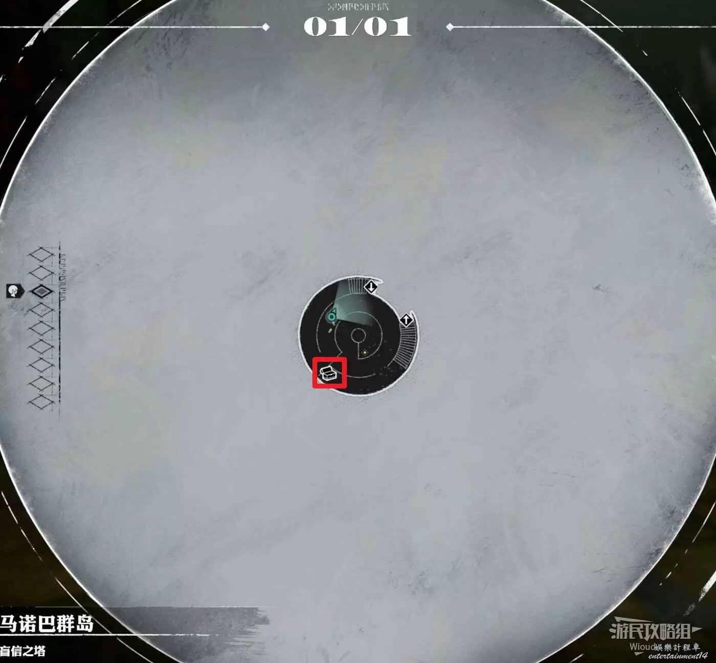 與地圖右側系統指引的電梯互動得知缺少能源無法啟動,因此我們需要前往地圖的左下角獲得能源,這裡還能開啟地圖右側區域的一個寶箱。
