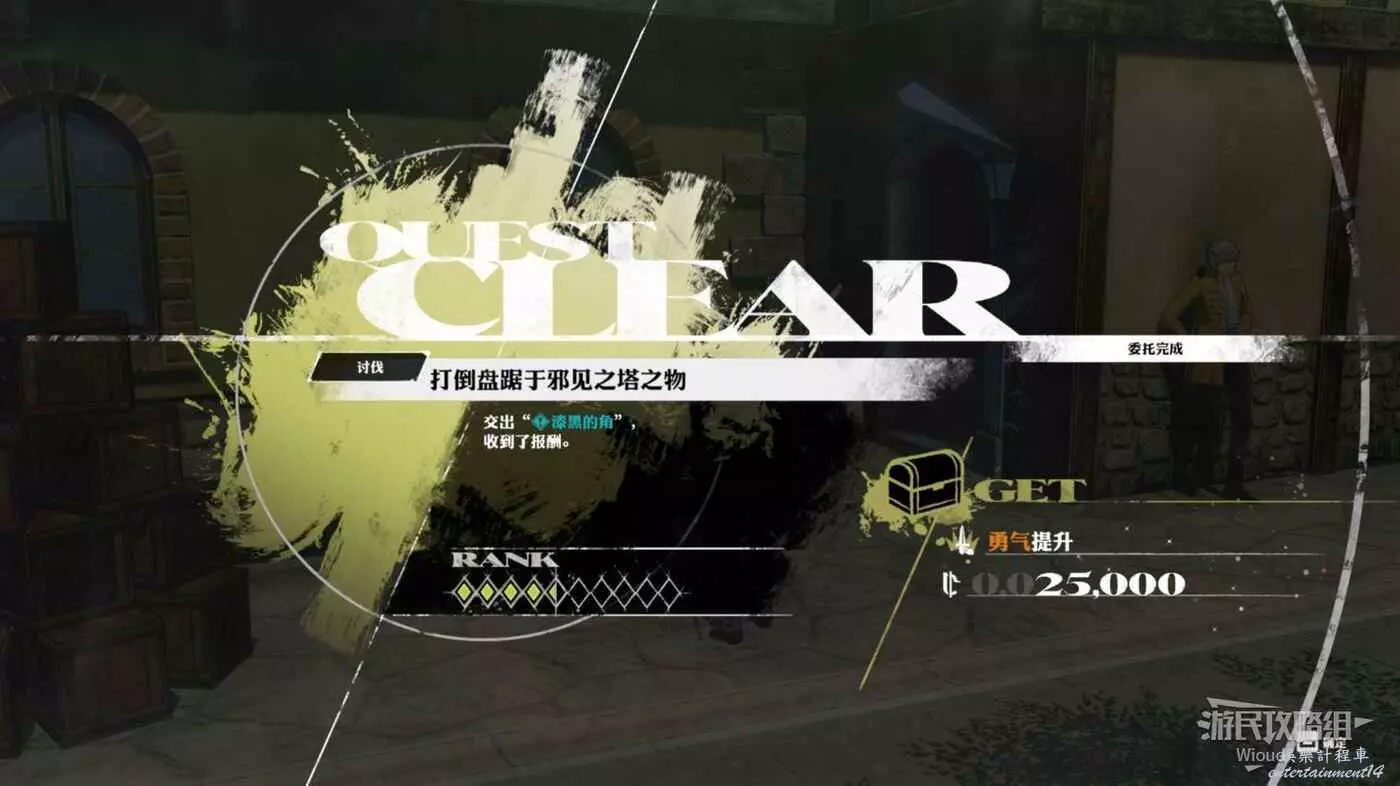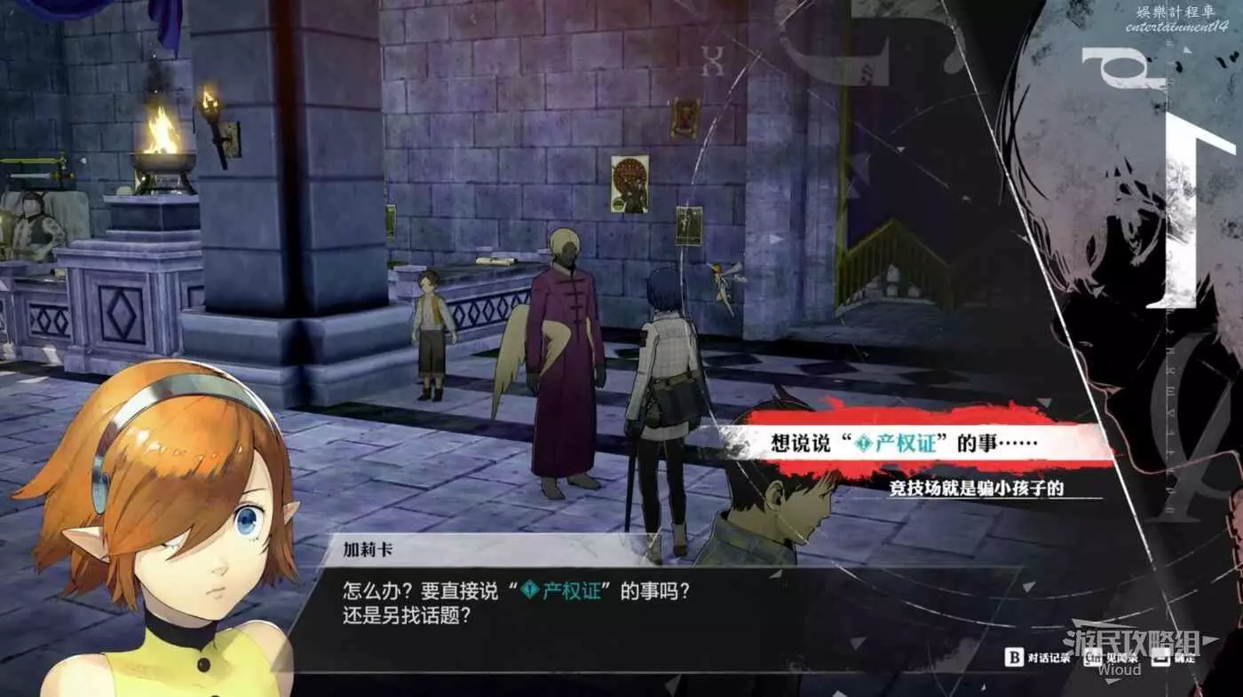 依次選擇選項【你對我的長相有印象嗎】-【競技場就是騙小孩子的】-【我經歷過真正的戰鬥】-【你知道邪見之塔嗎】-【我想要“產權證”】。