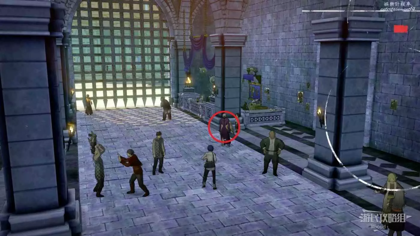 正面大廳是這個迷宮的第一張地圖,沒有機關,只需要將地圖的所有寶箱探完,從右上角進入地圖中間位置觸發劇情,然後往最上方的門進入王宮庭院即可。