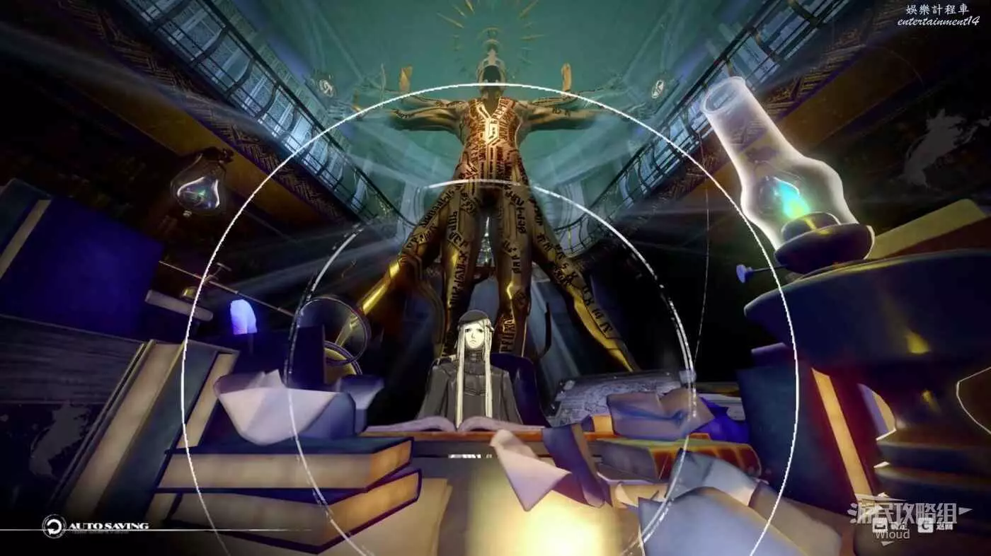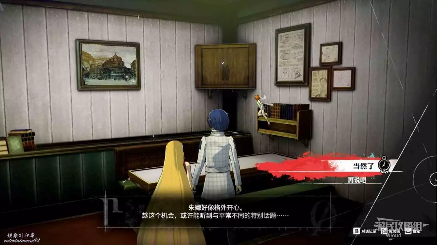 與房間內的綠色光點互動,最後與書架互動時發現朱娜走了出來再次進入劇情,在朱娜離開房間後直走追上倆人。