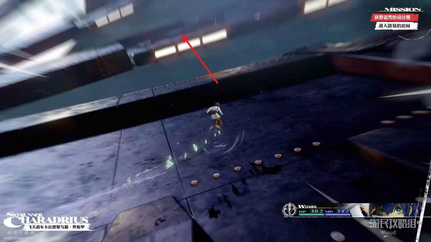 禦劍飛行時觀察前面翅膀上面的發光點,此處便是跳躍點,每到一個新翅膀就往下一個發光點走,過幾個翅膀到達路易的房間。