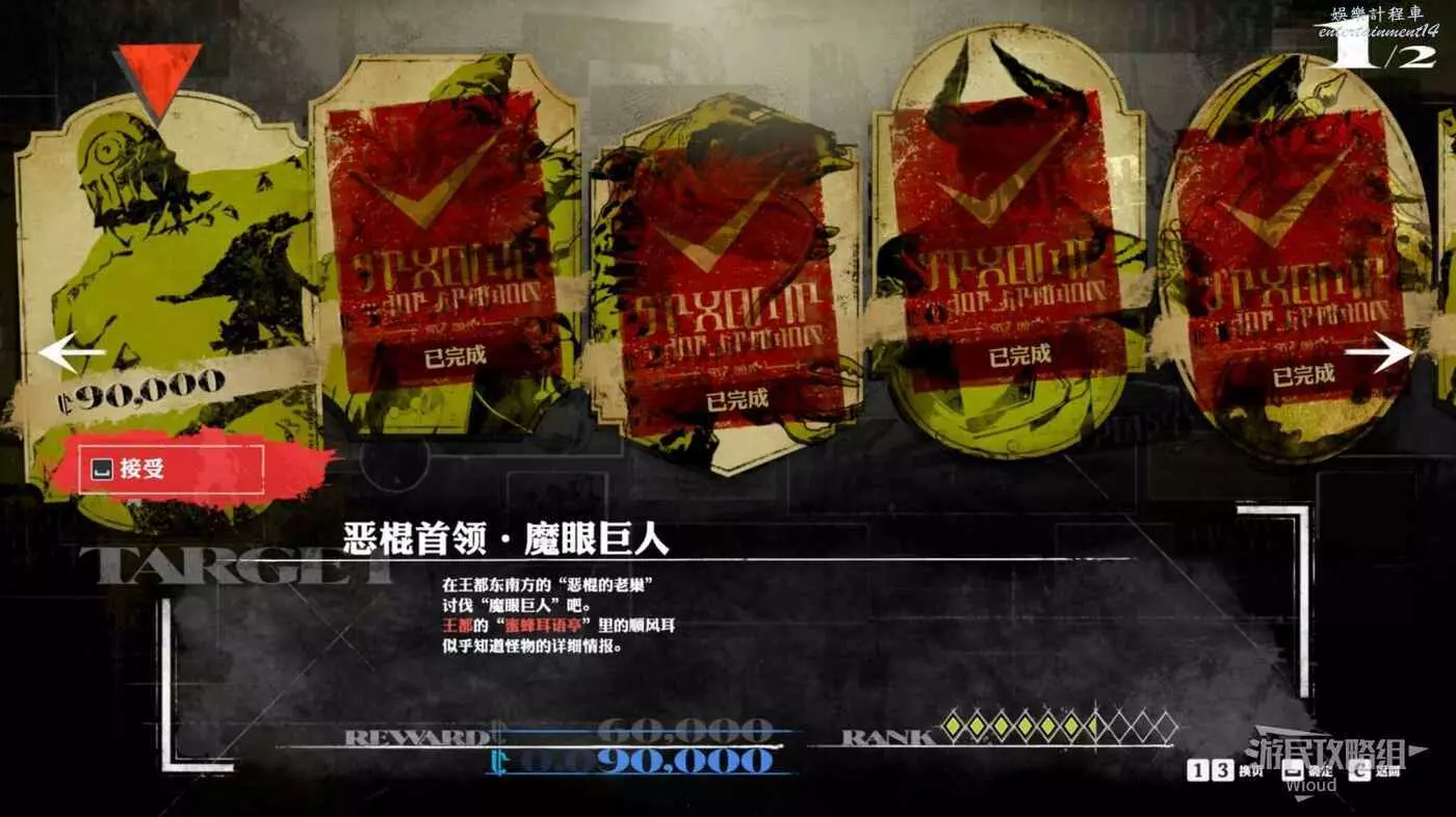 傳送到王國軍徵兵所,接取新的賞金委託【比惡棍還危險的獨眼怪物】。