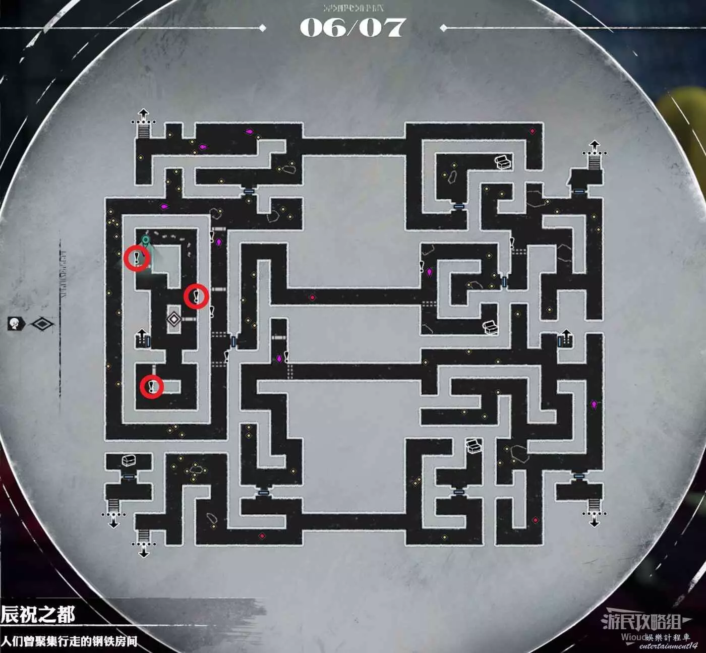 【人們曾聚集行走的鋼鐵房間】是最主要的探索區域,【鋼鐵房間】地圖的各個區域是分離的,需要從其他兩層的樓梯口與電梯到達。