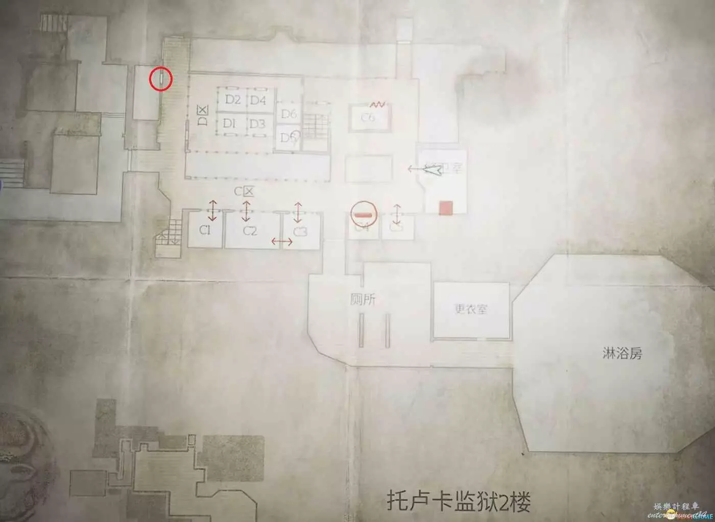經過L3.c5.c4.c3前的走廊,繼續,可以搜刮衛生間→c2→c1→洗衣房。