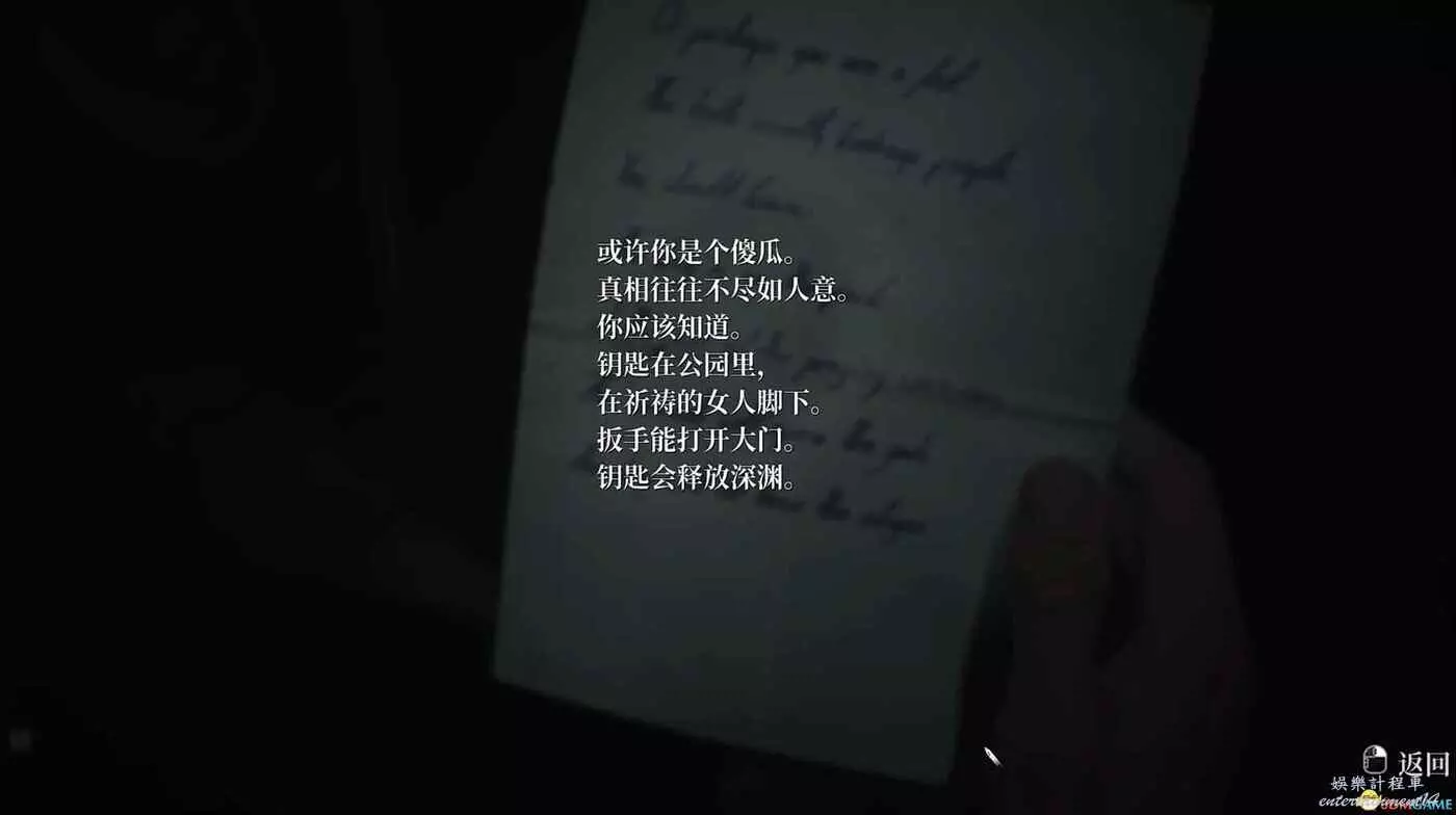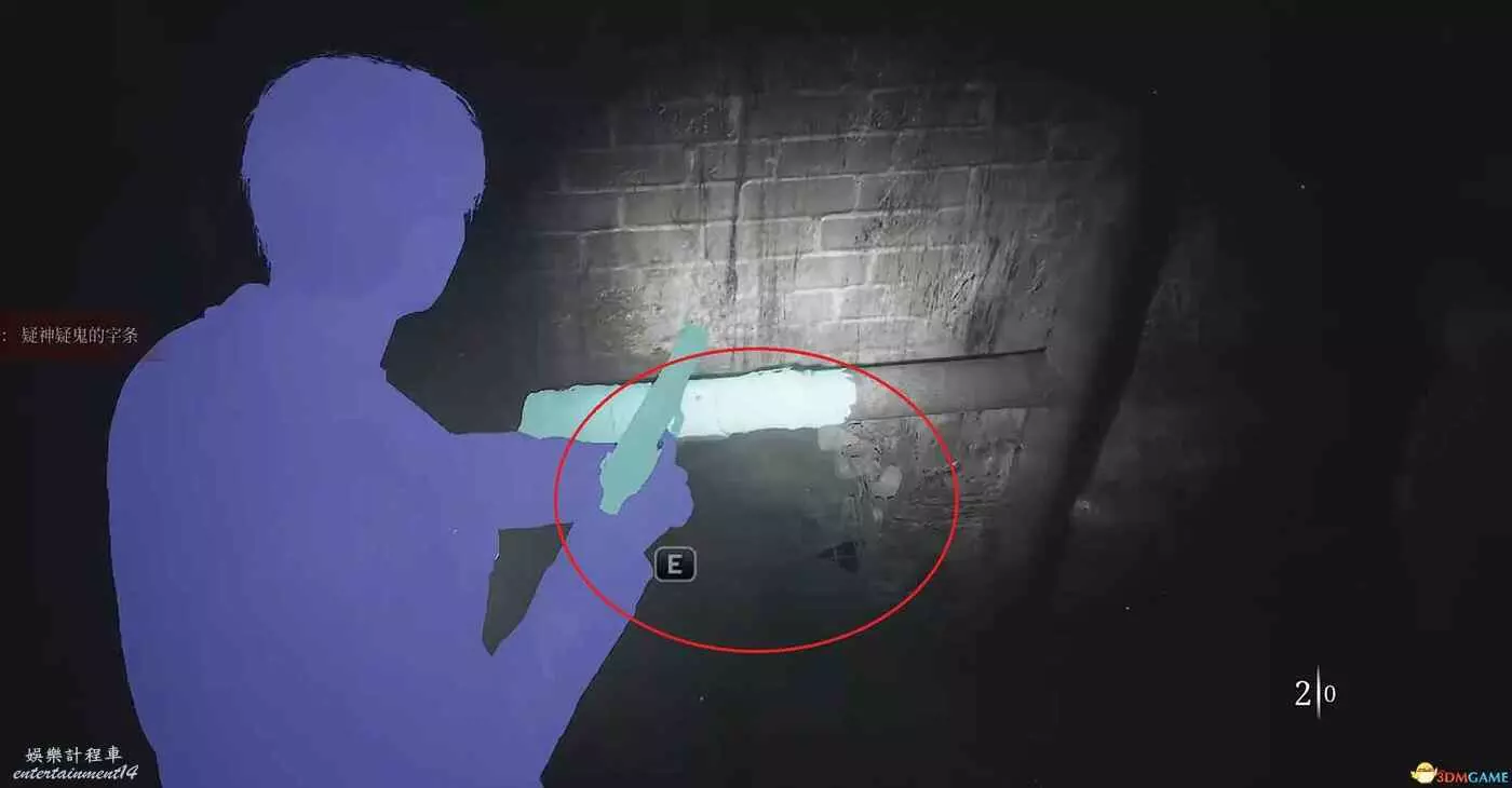 夾層水管子附近地面上可以撿到疑神疑鬼的字條。