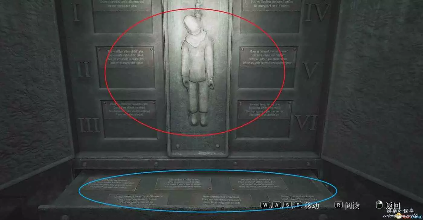下方(南)牆邊地上可以和石板互動,觸發舊日迴響。