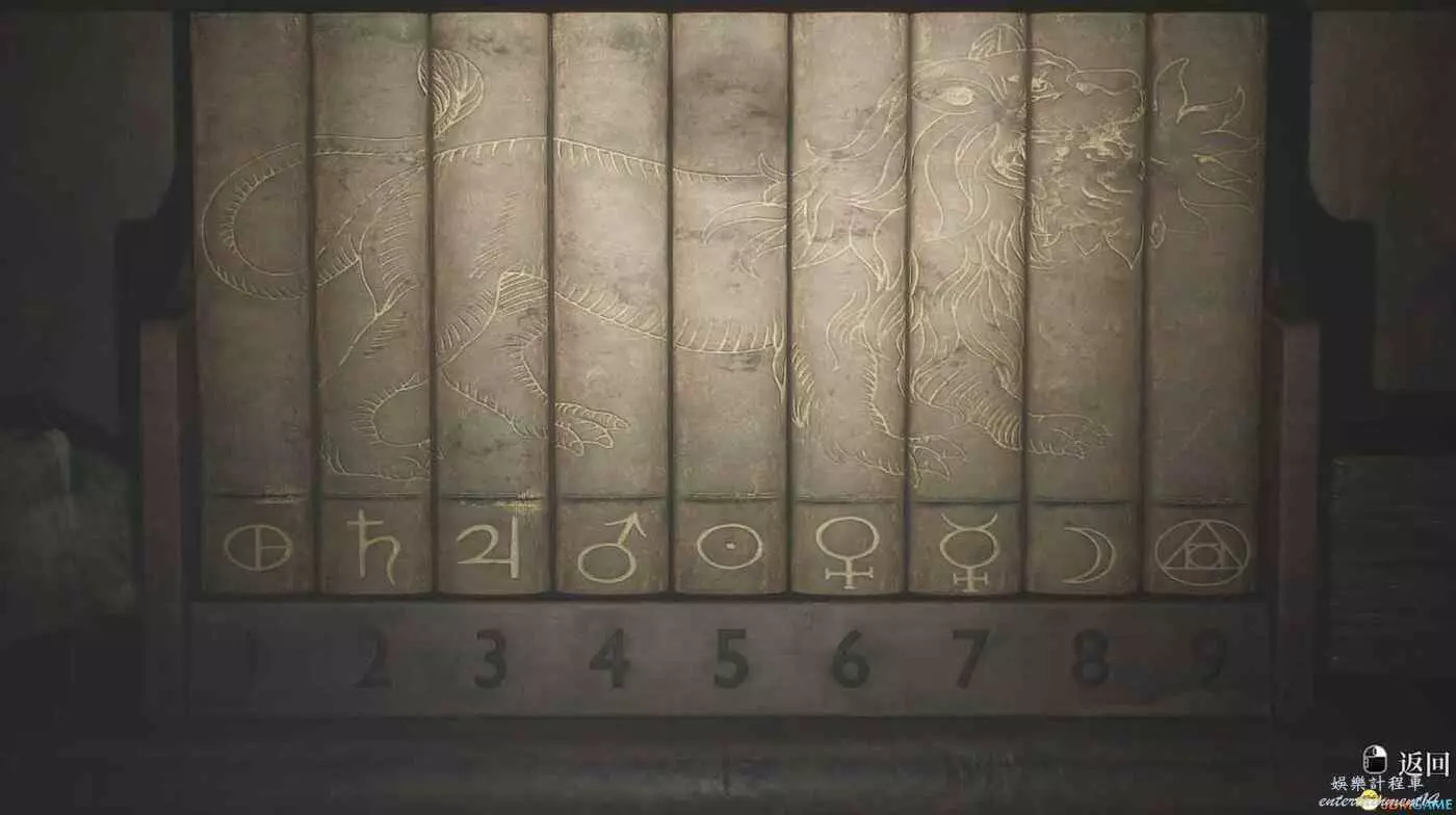 和書櫃互動,移動書本,讓書籍圖案拼成如圖的類似獅子的樣子。