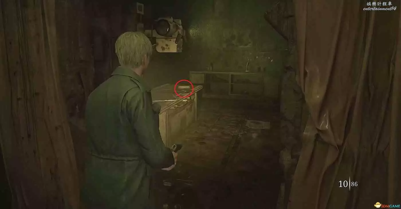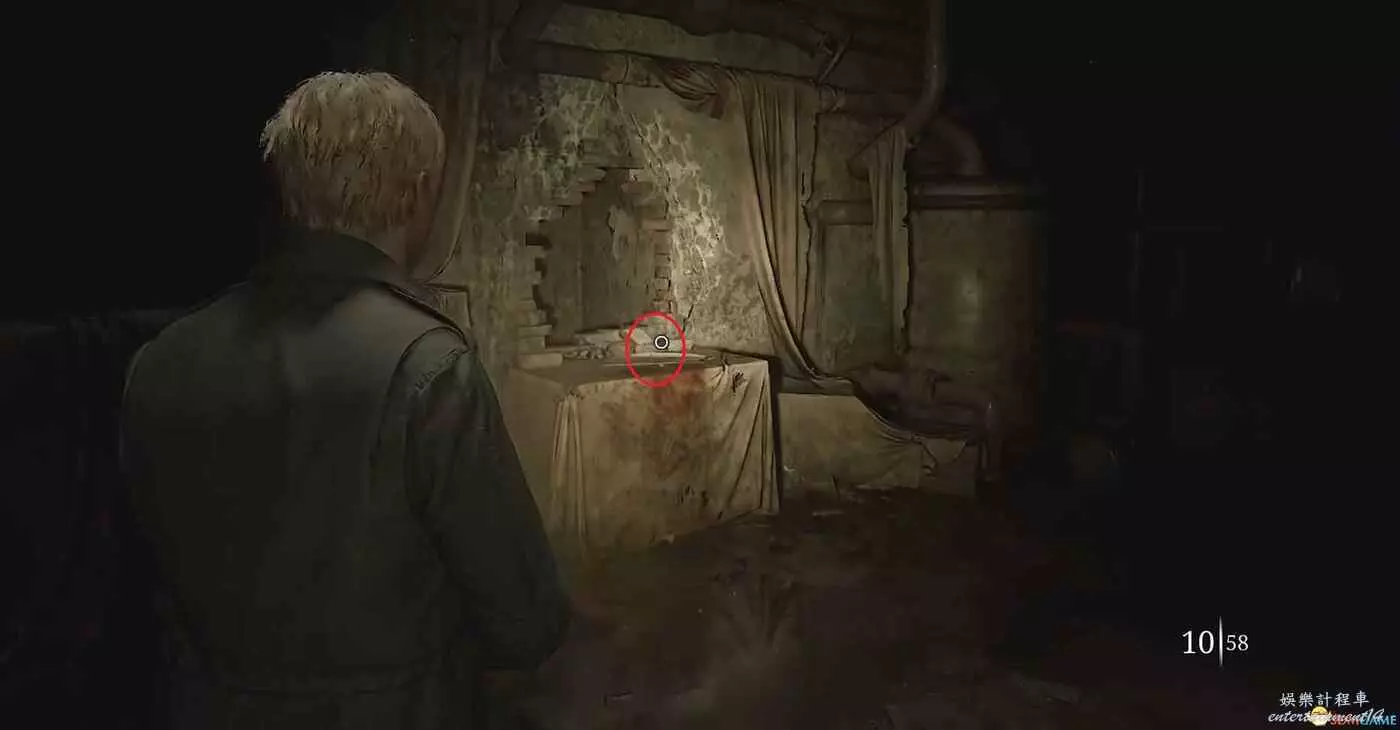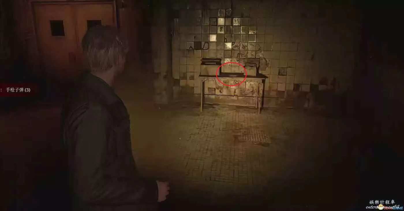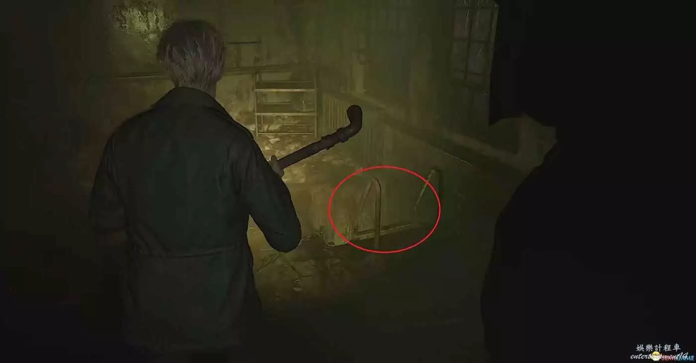 詹姆斯會墜落到三樓右上角水療室附近,水療室裡有些可以搜刮的東西(兩種子彈、注射器、藥劑都有)。