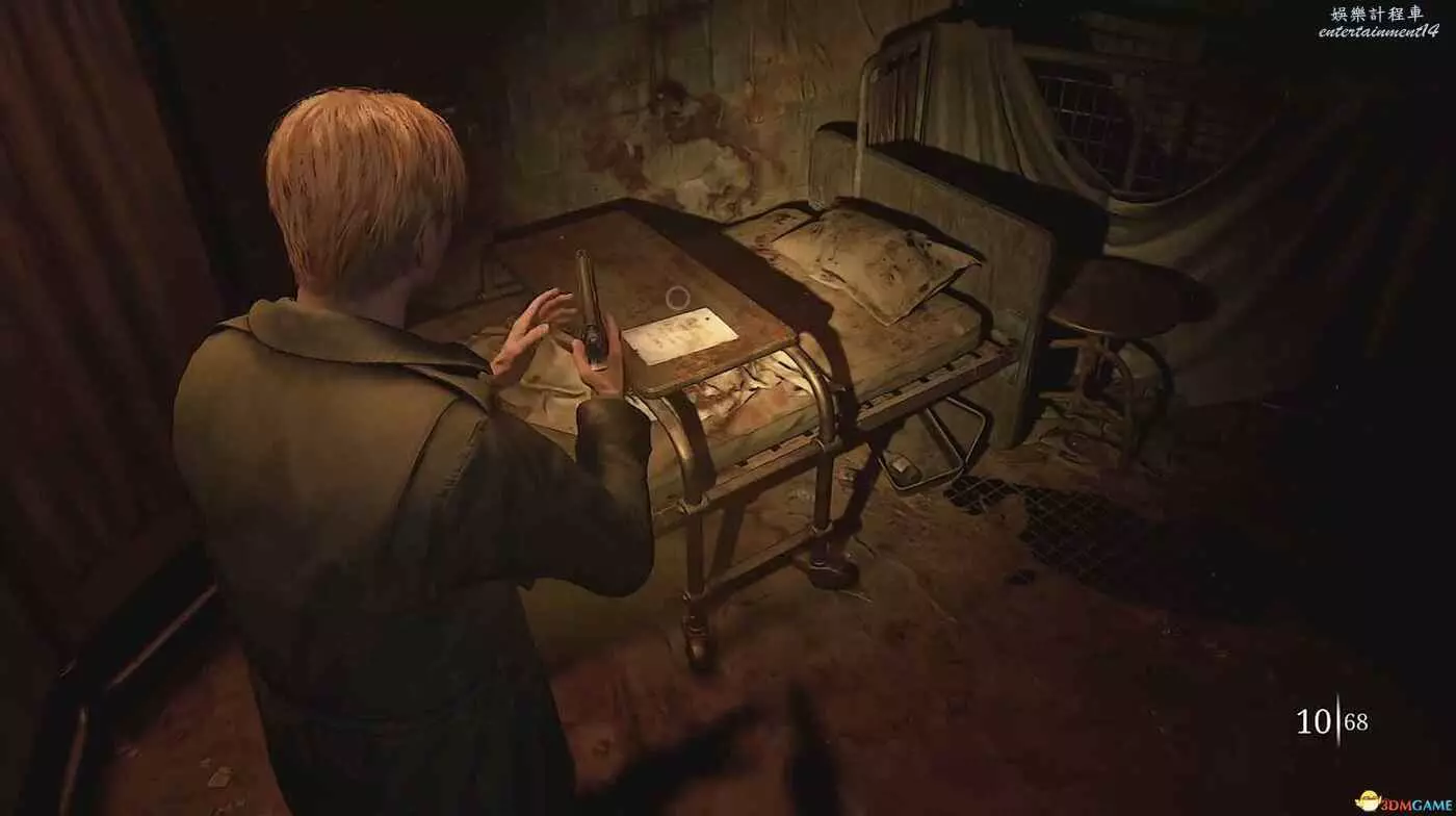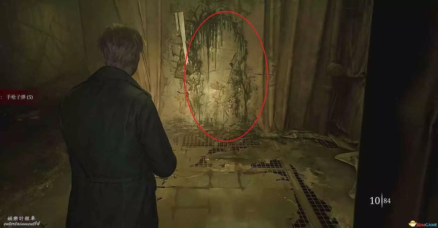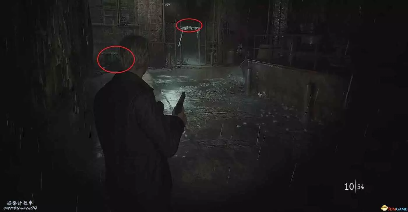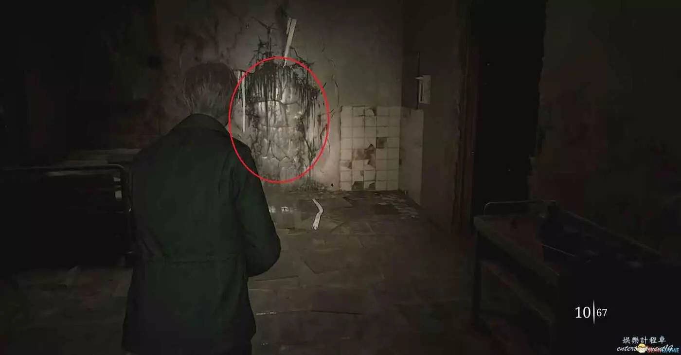 詹姆斯會墜落到三樓右上角水療室附近,水療室裡有些可以搜刮的東西(兩種子彈、注射器、藥劑都有)。