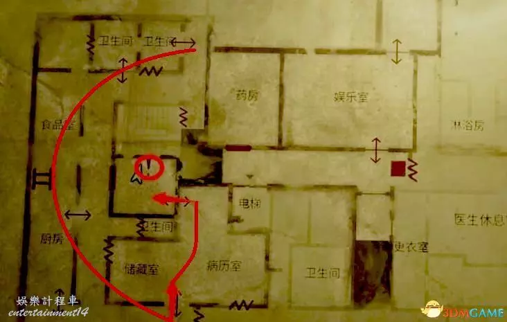 來到醫務室北面的房間,就是前文地圖醫務室上面標有問號的房間。