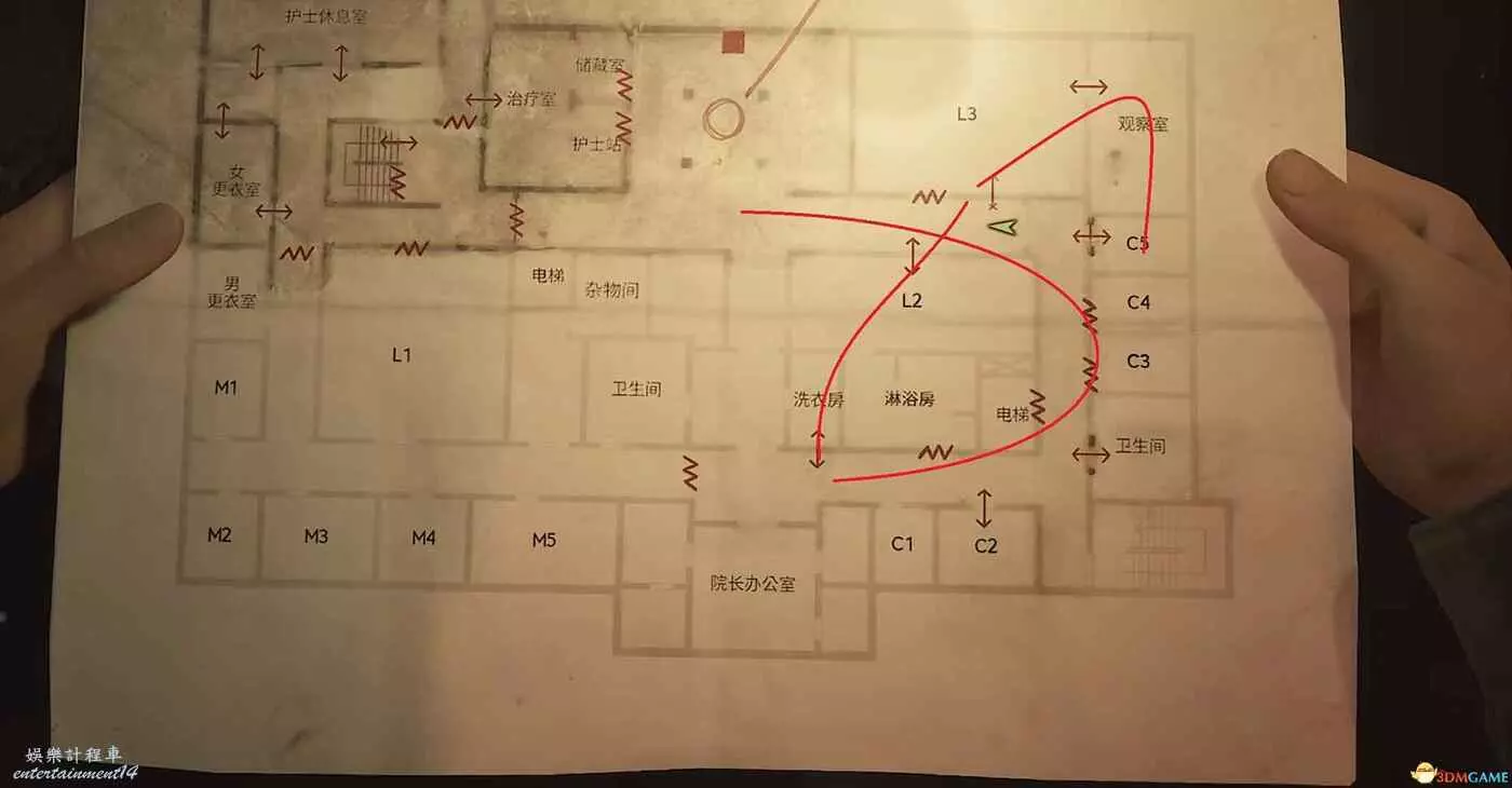 翻窗進入檢查室5,前往走廊,然後可以進入D3房間搜刮下。