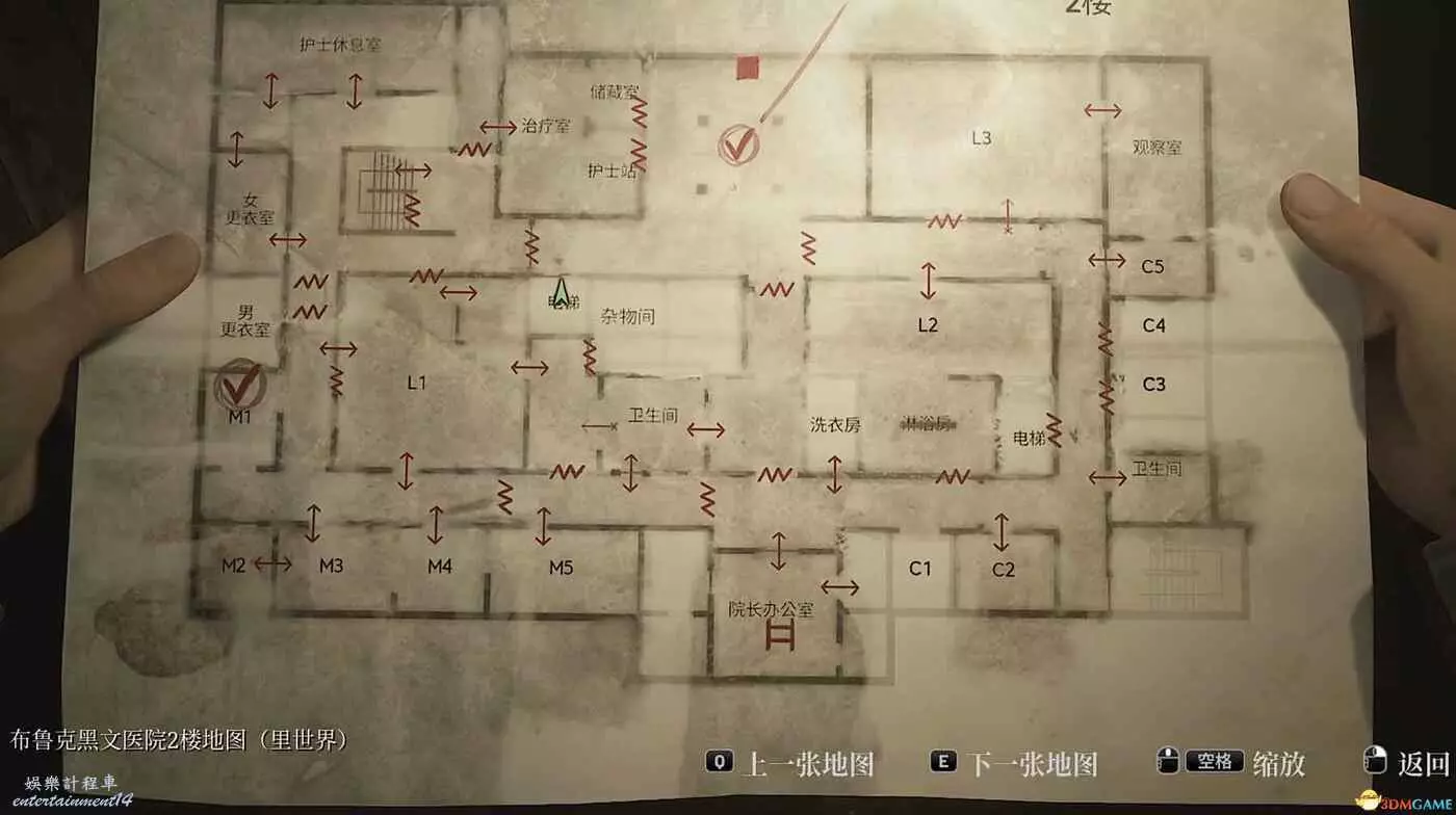裡世界地圖還是和表世界一樣,不過環境卻是鏽跡斑斑(可以直接參考前文的表世界醫院地圖進行遊戲)。