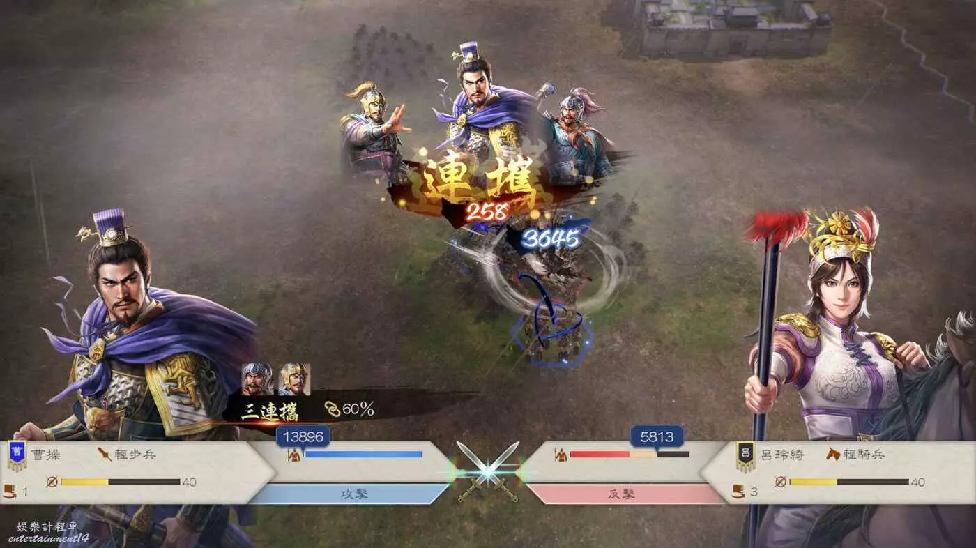 說正題,剛開始不太熟悉也是被打的找不著北,後來慢慢熟悉就基本很少輸了,可以確定兩者一樣,機制就是撲克的梭哈玩法,出牌比大小,同花大於順,沒有三連也是2張同的點數更大,2+2>4這樣。這和12代的天地人還是有一點區別,後者有一個天地人互克的機制,這裡就是純比大小。然後有一個隱藏的機制吧,不知道有沒有人留意到,必殺是隨著回合增加傷害也變高的,前三回合打出的必殺是不如後面的威力。