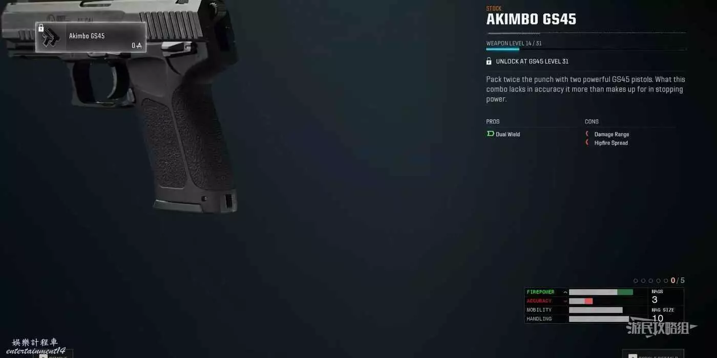 裝備GS45後繼續刷喪屍提升武器等級到31,解鎖雙持GS45。建議在喪屍模式中使用強化機強化GS45,強化後造成的擊殺也能為普通GS45提供經驗值。