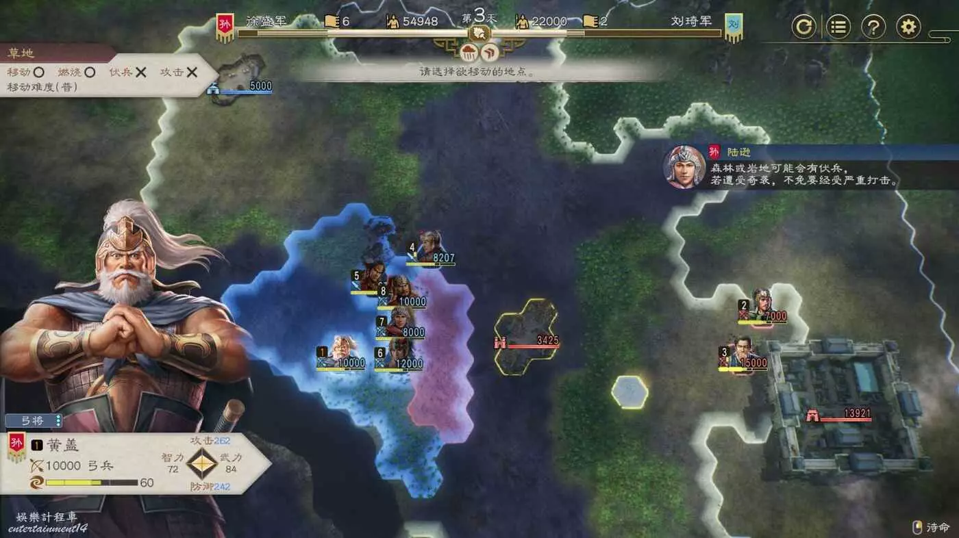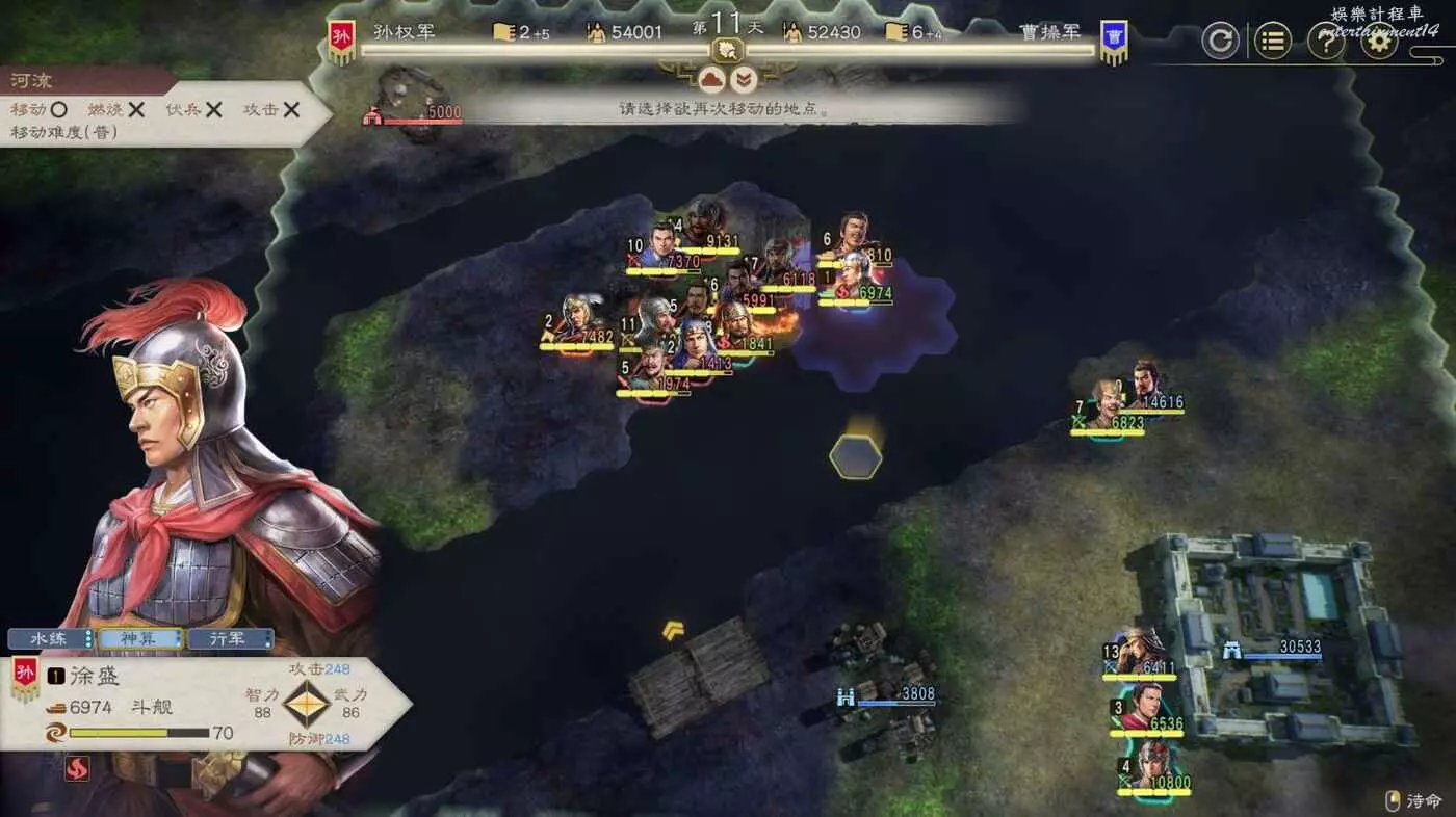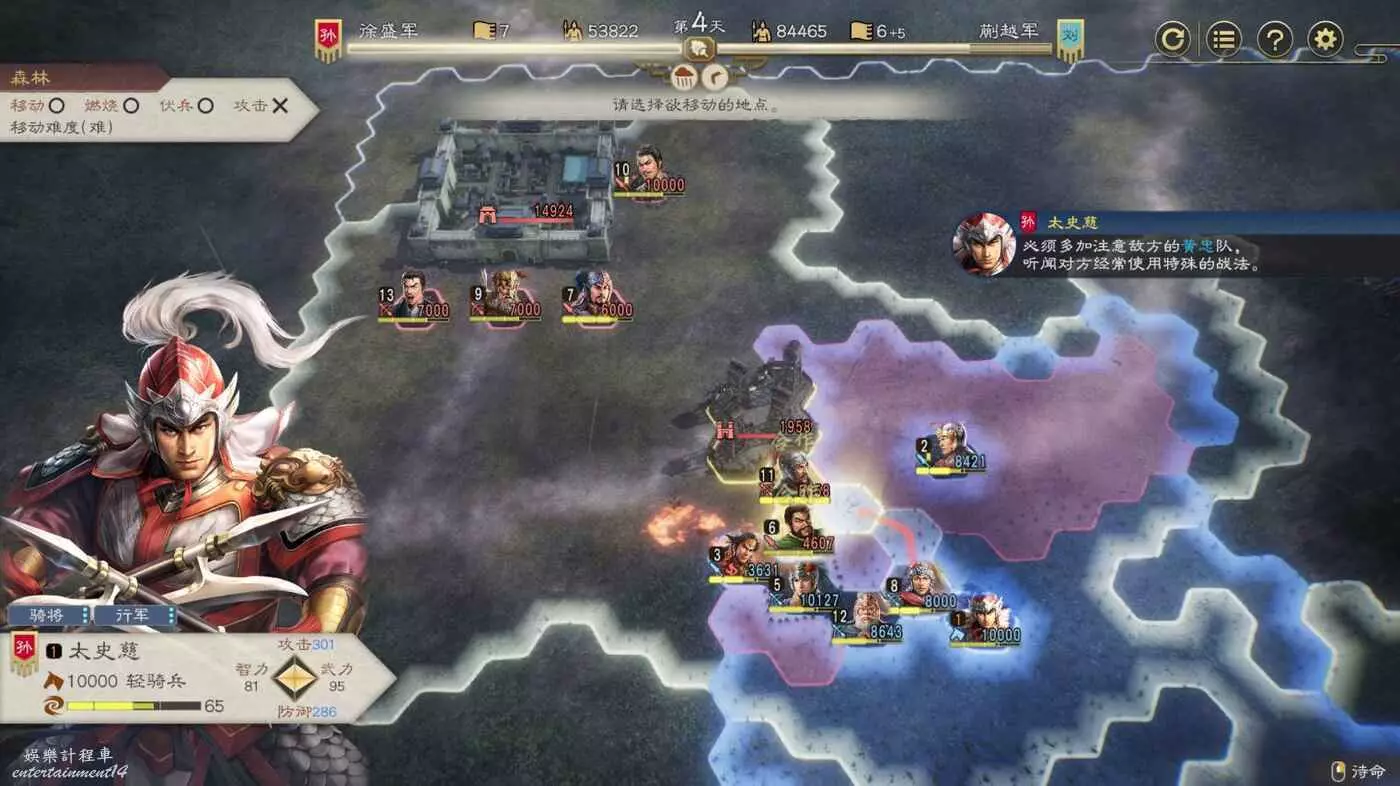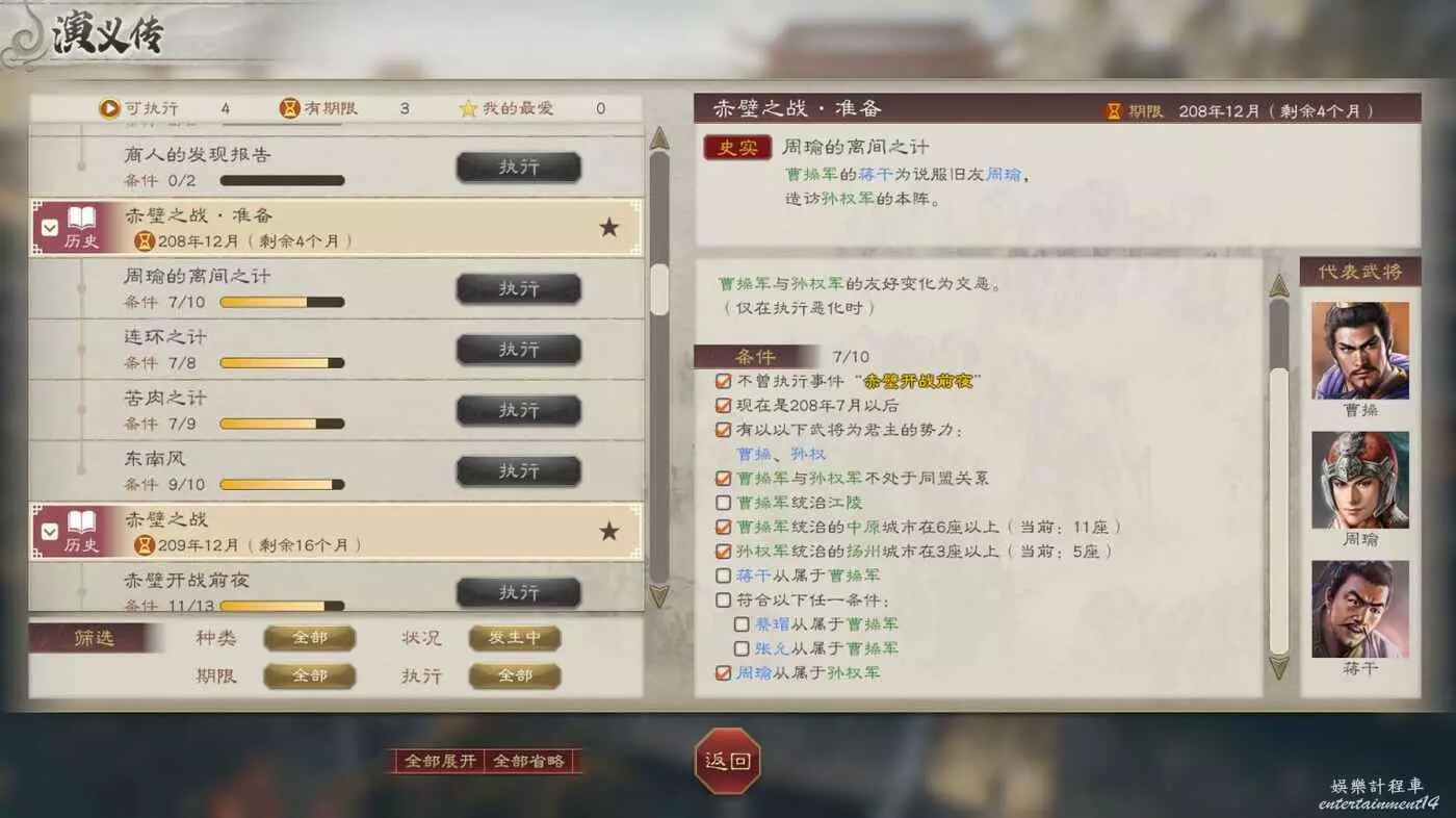開戰後第3天,太史慈跟程普、黃蓋先過河到前線,我們和周瑜速通左下角兩隊人馬然後拆了烽火台