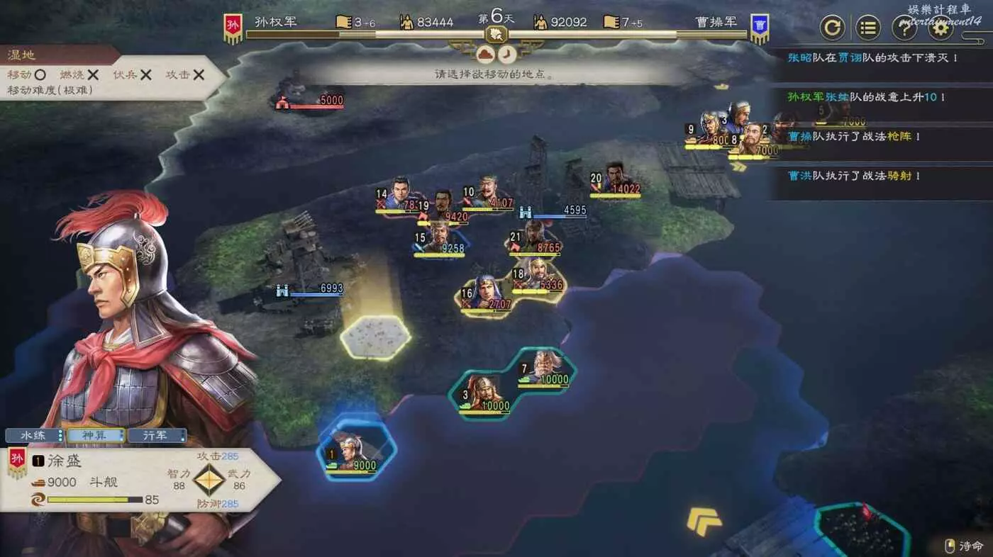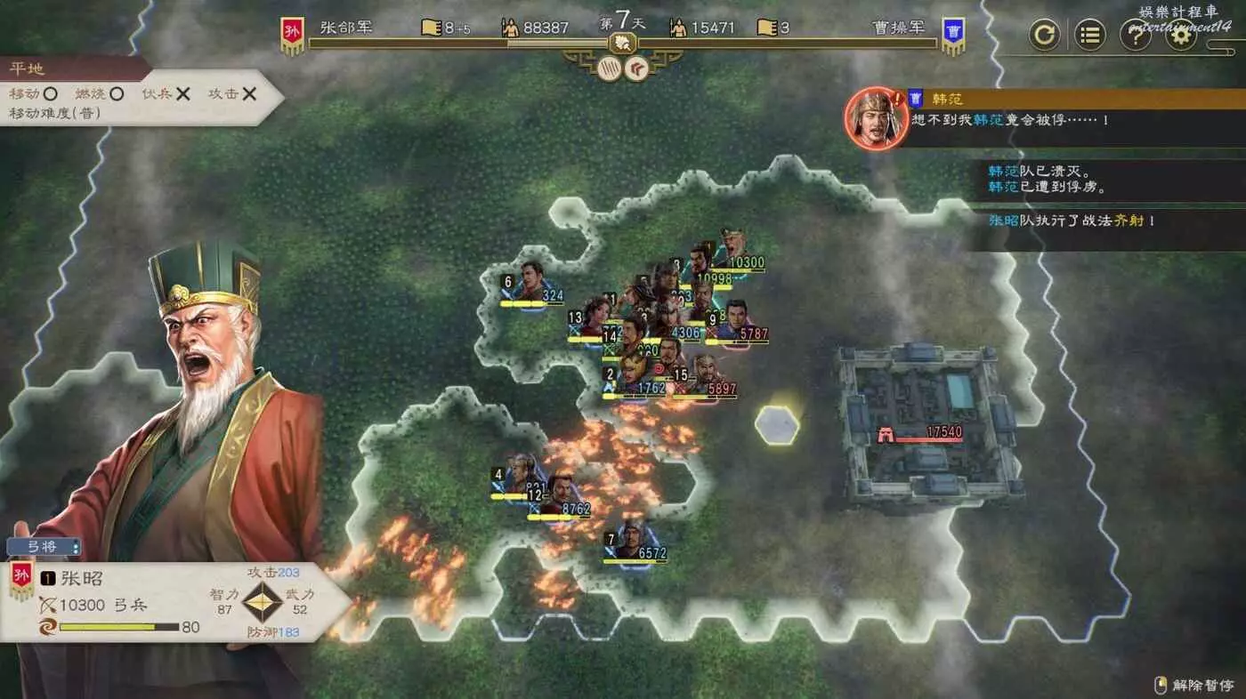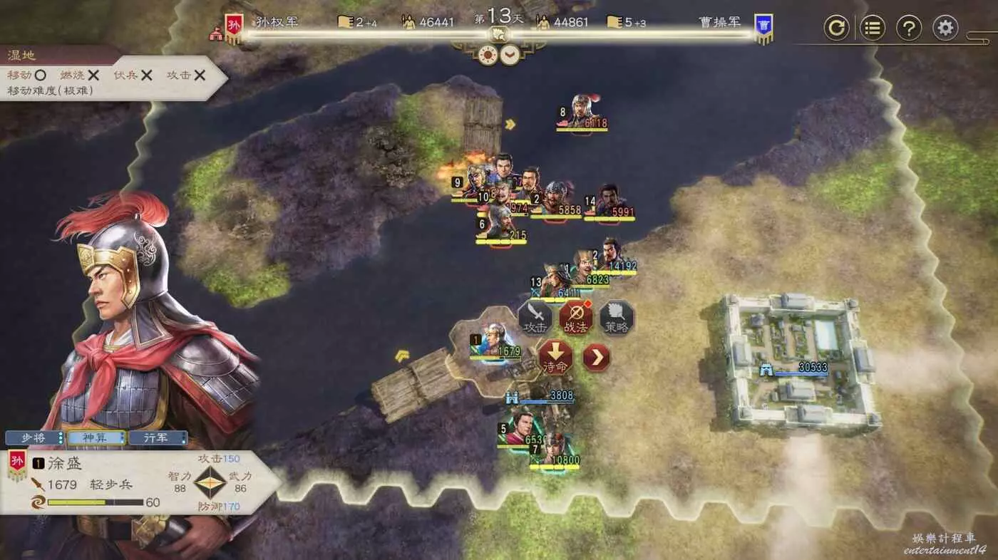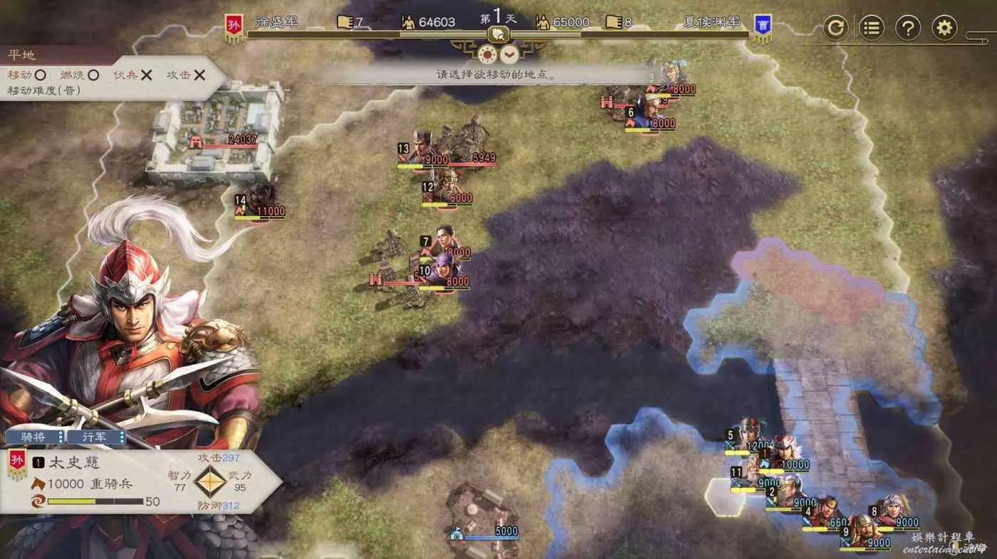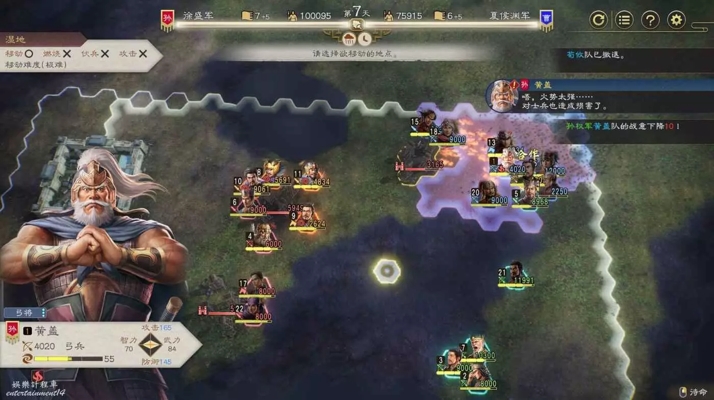 開戰後第3天,太史慈跟程普、黃蓋先過河到前線,我們和周瑜速通左下角兩隊人馬然後拆了烽火台