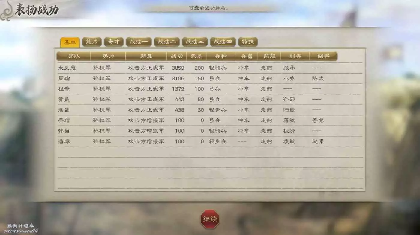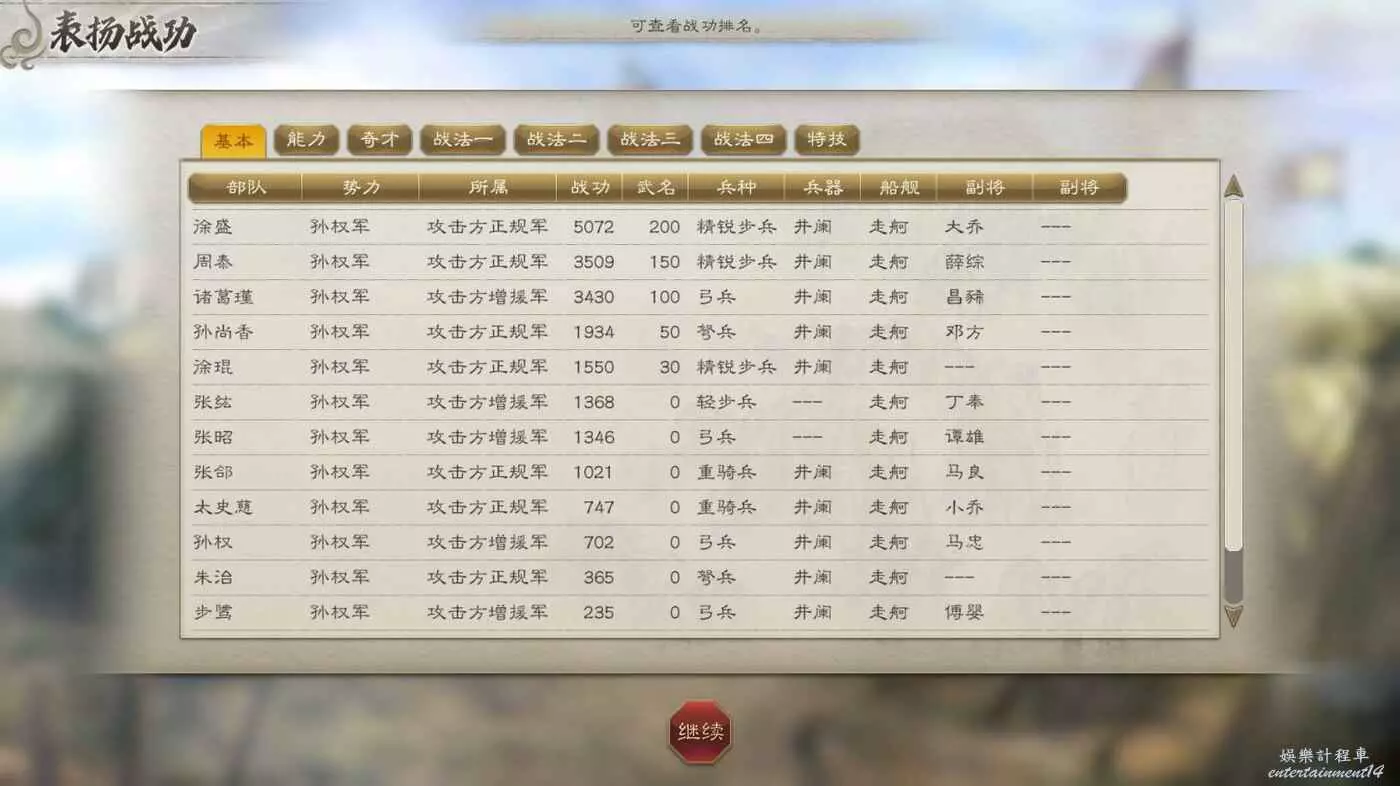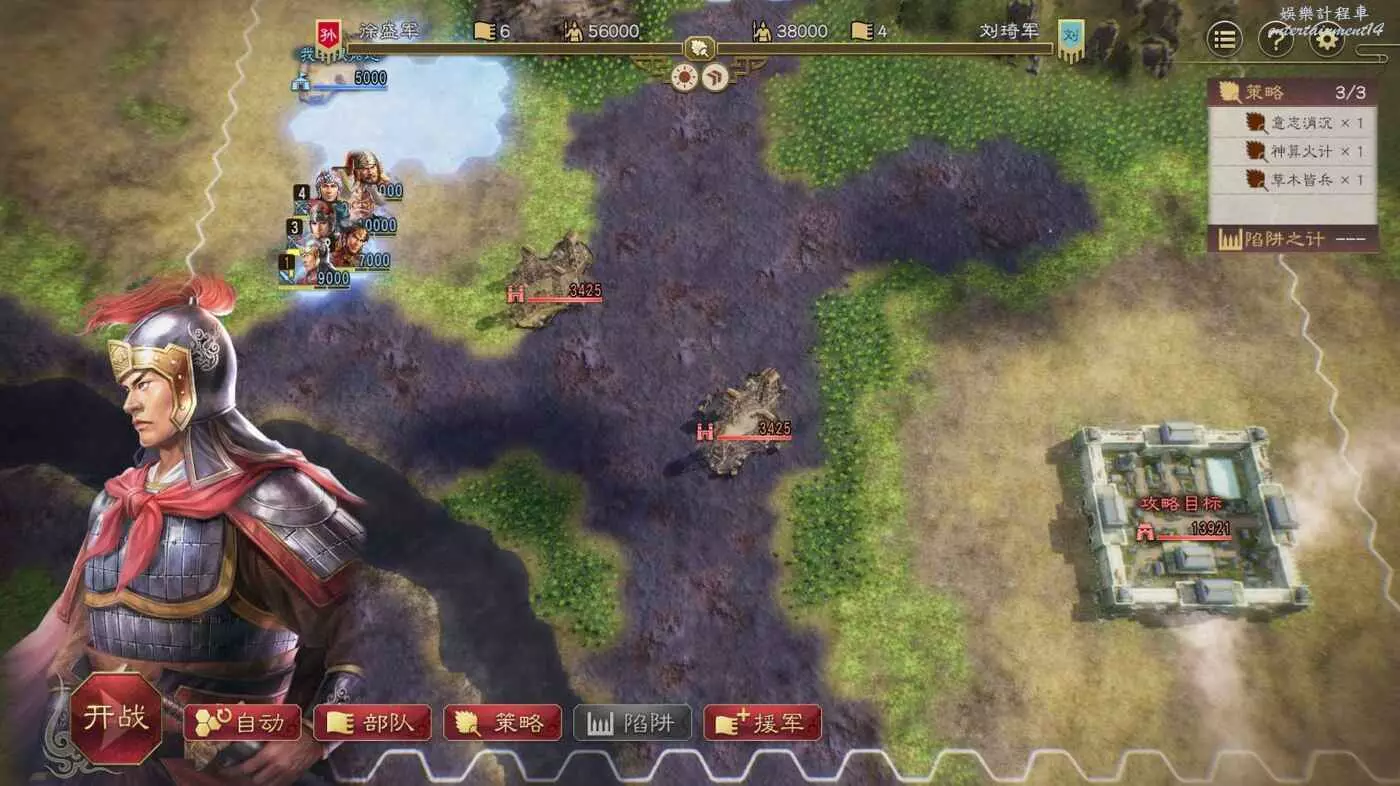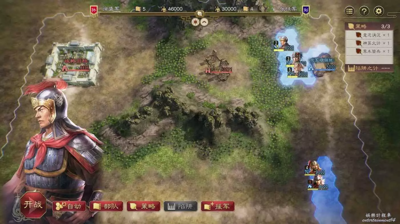 敵方援軍剛到就被打的只剩殘兵,然後就剩收尾本地守軍了,打的時候注意不要讓徐盛被打死,放不了計策必輸,對面人太多了。