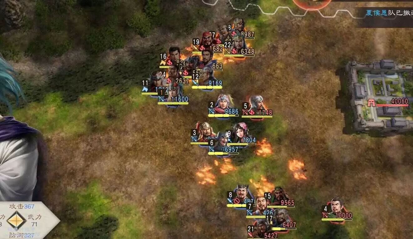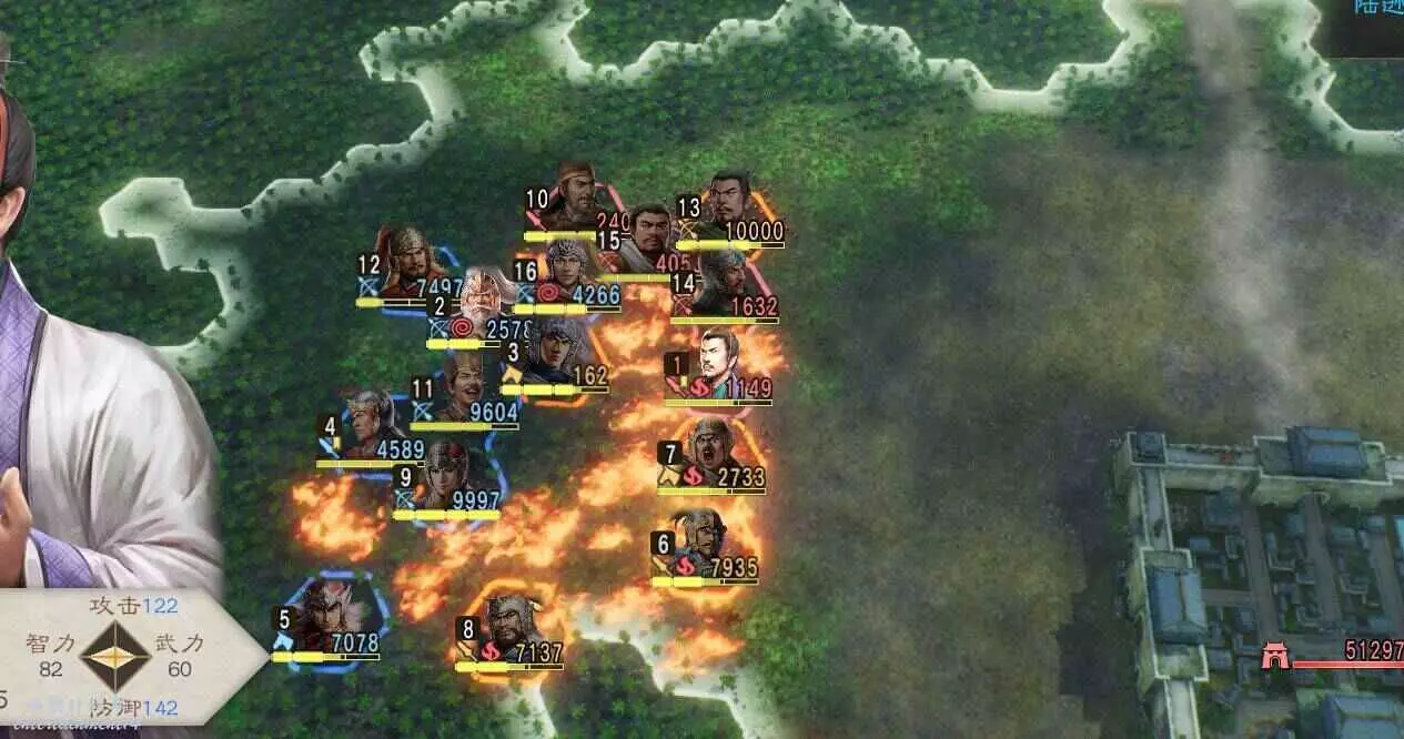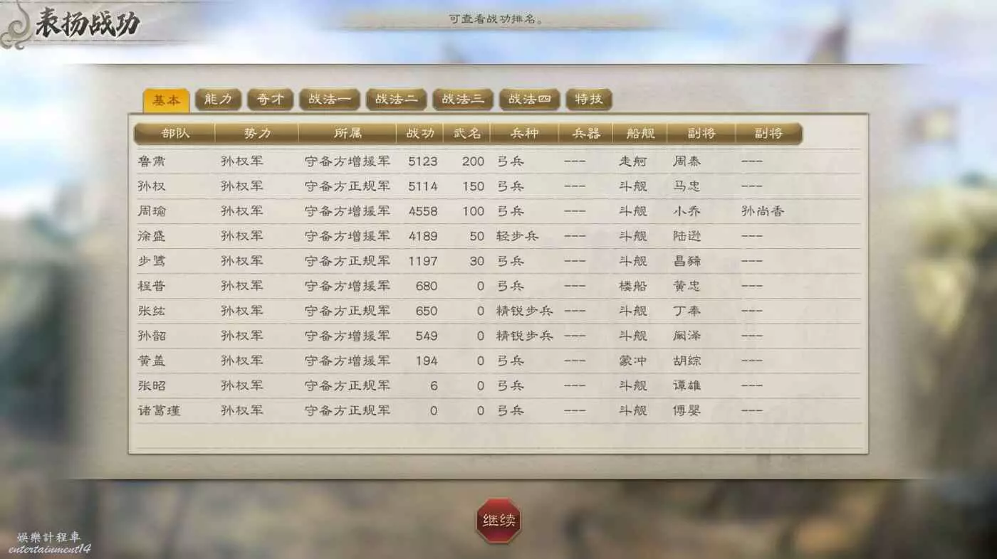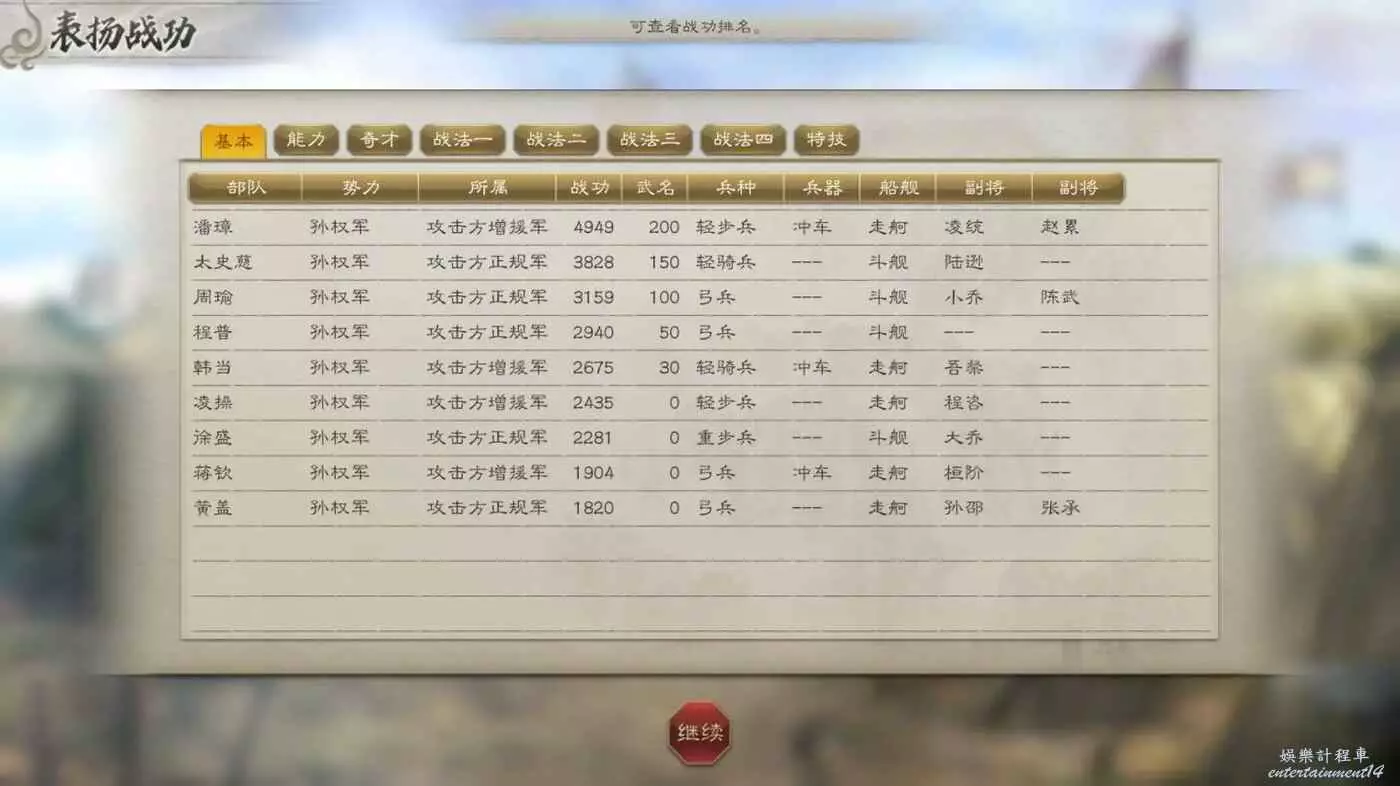 敵方援軍剛到就被打的只剩殘兵,然後就剩收尾本地守軍了,打的時候注意不要讓徐盛被打死,放不了計策必輸,對面人太多了。