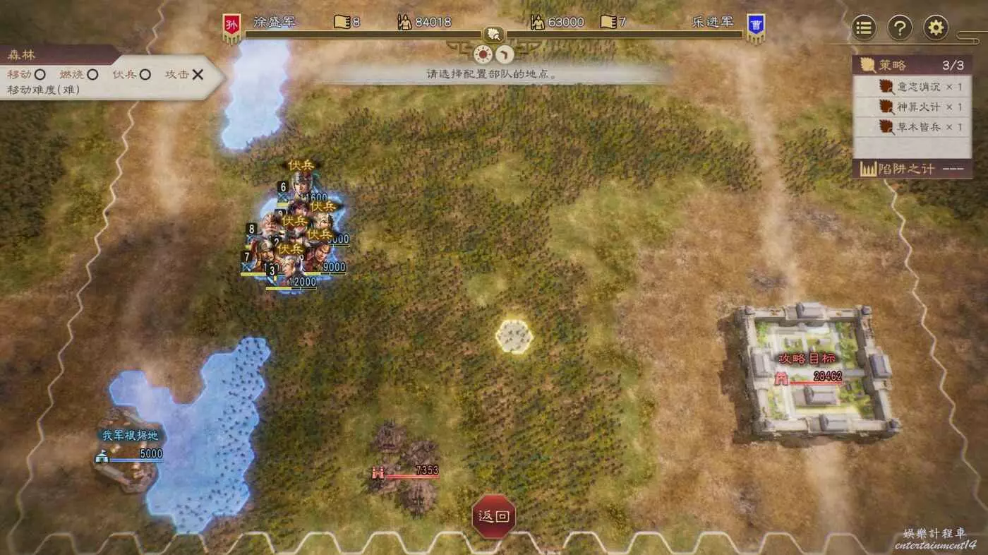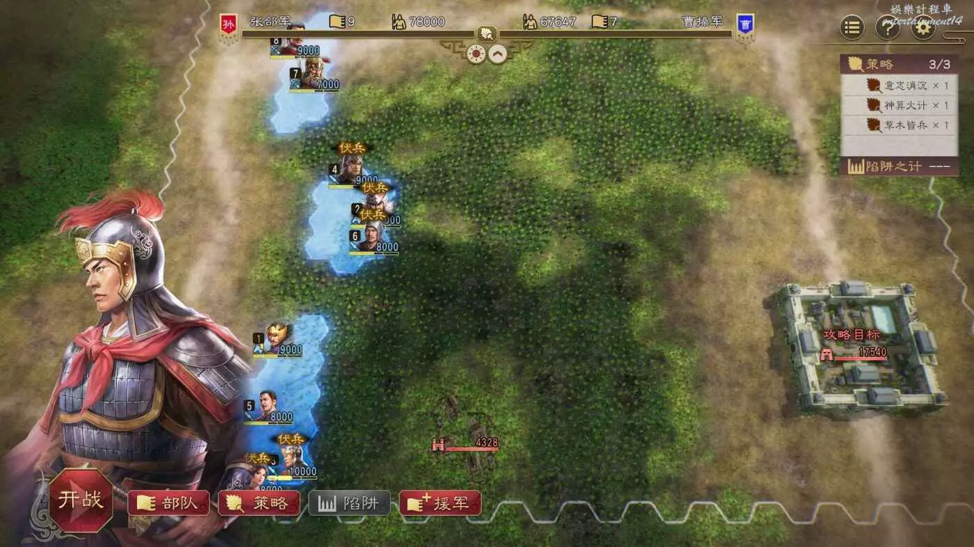 過完3天,曹操的援軍已經到達,我們的還得等一天,趁剛到達當天敵軍無法行動,狠狠地輸出一波