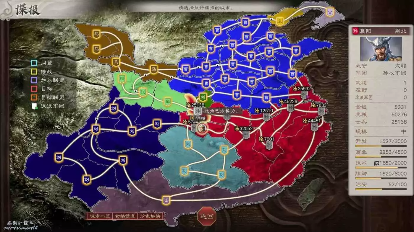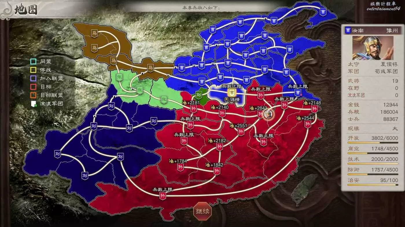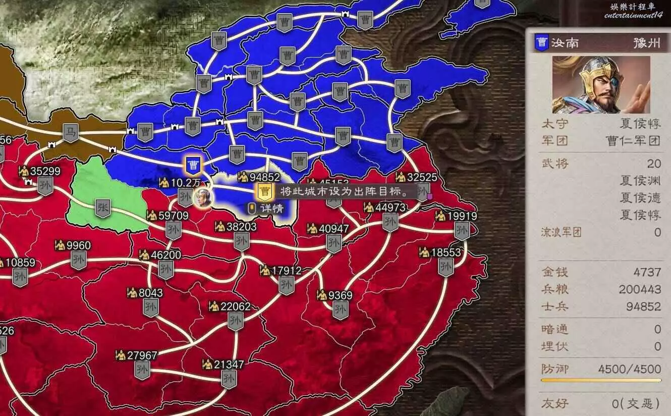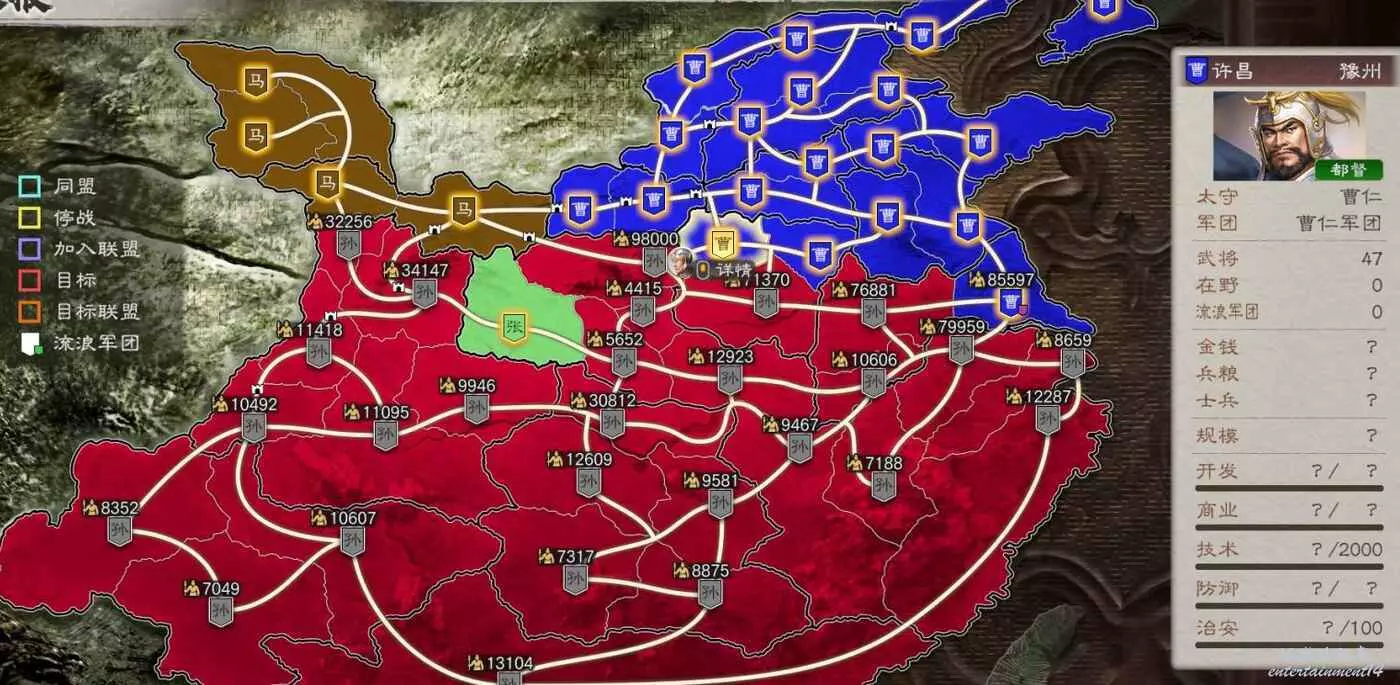 所以現在目標有所變化,先拿下我可愛的盟友張魯馬騰,然後借劉備兵力幫我夾擊宛城和汝南,再然後收下新野劉備隨後夾擊許昌,剩下比較難打的無支援作戰就不多了。