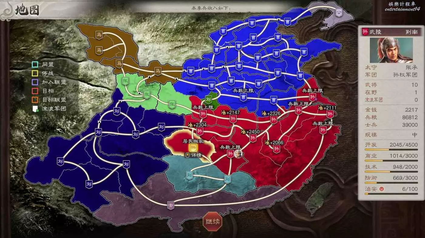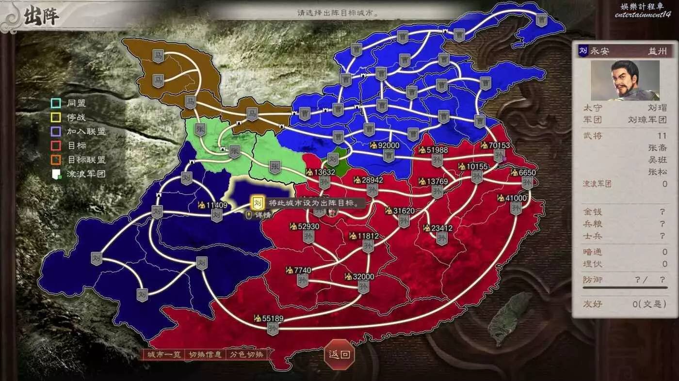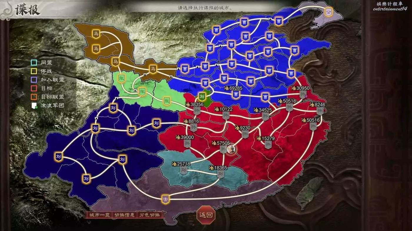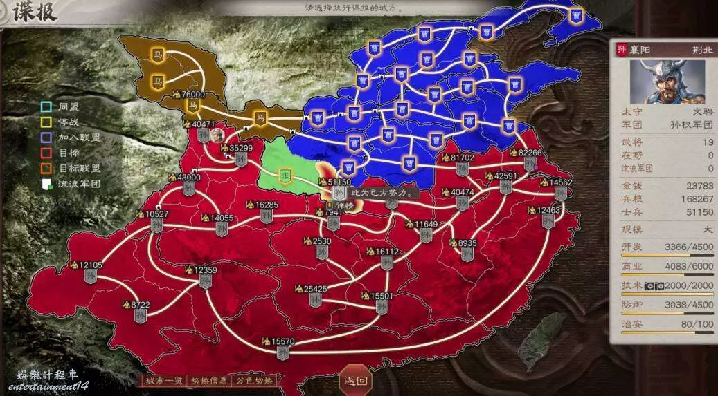 所以現在目標有所變化,先拿下我可愛的盟友張魯馬騰,然後借劉備兵力幫我夾擊宛城和汝南,再然後收下新野劉備隨後夾擊許昌,剩下比較難打的無支援作戰就不多了。