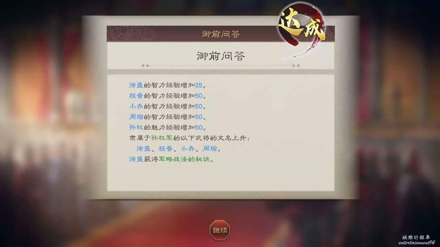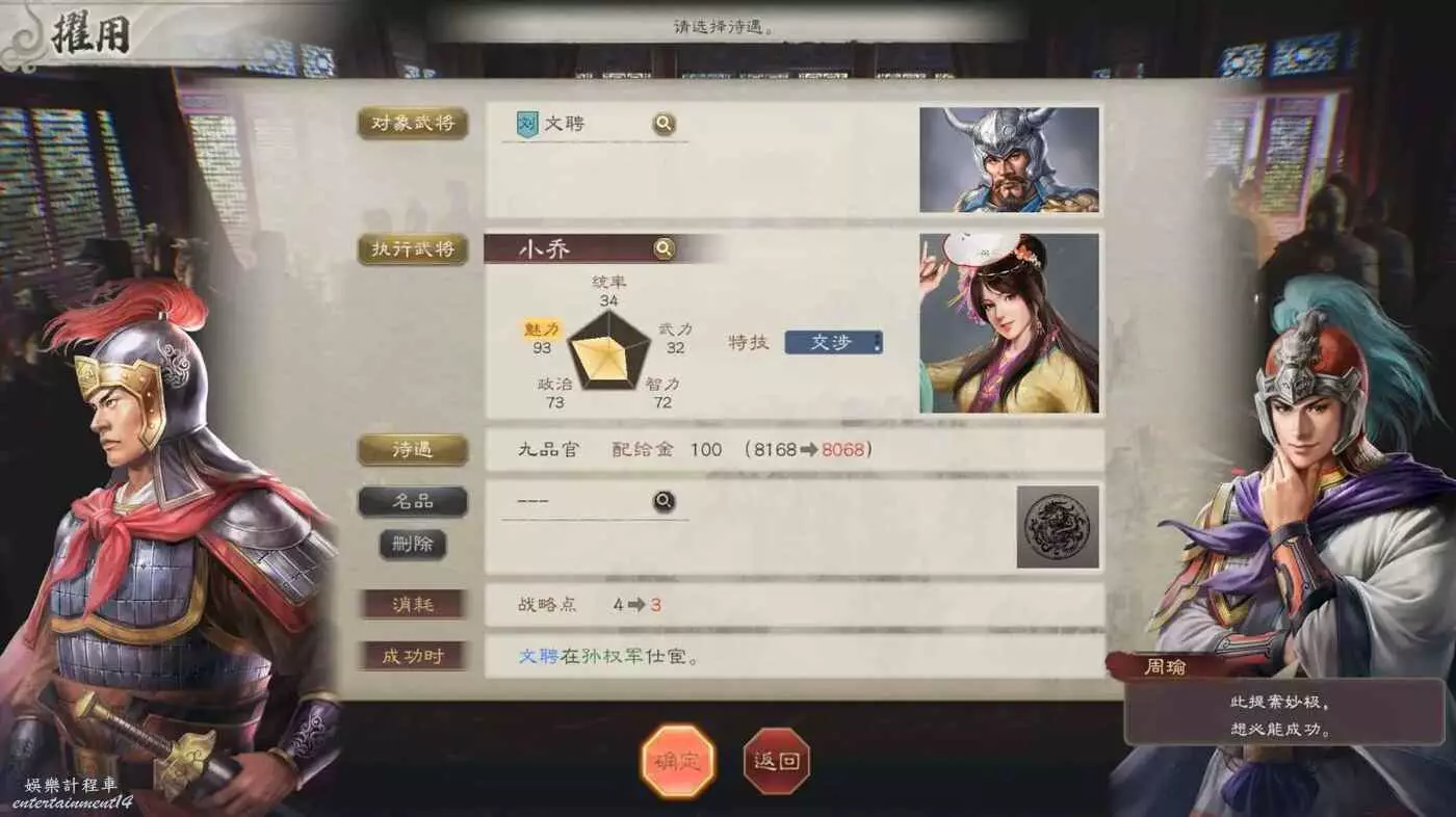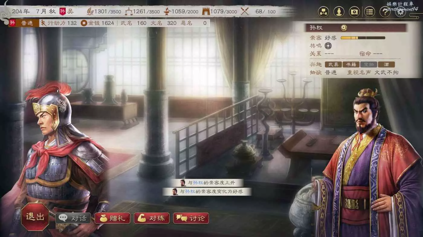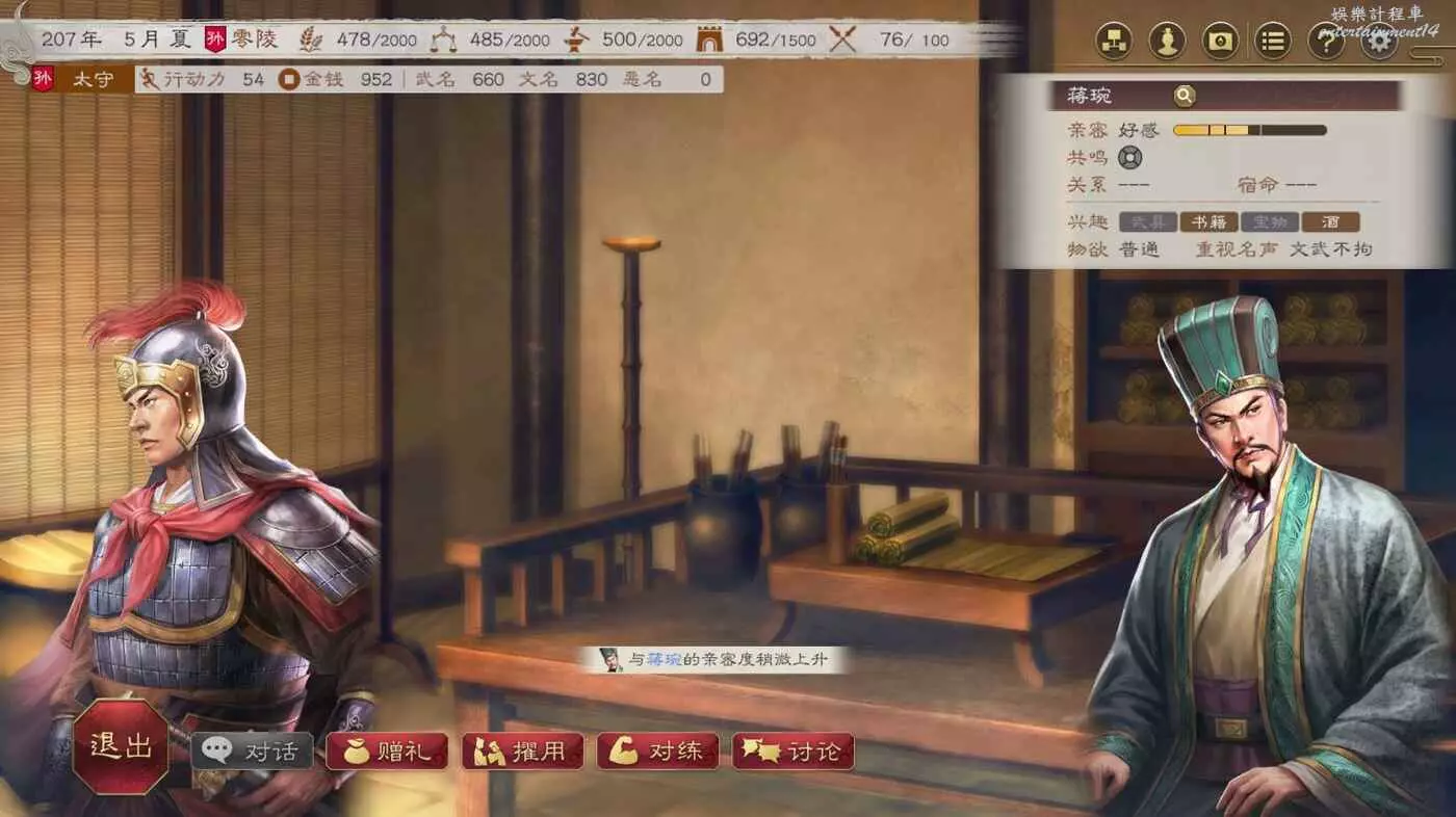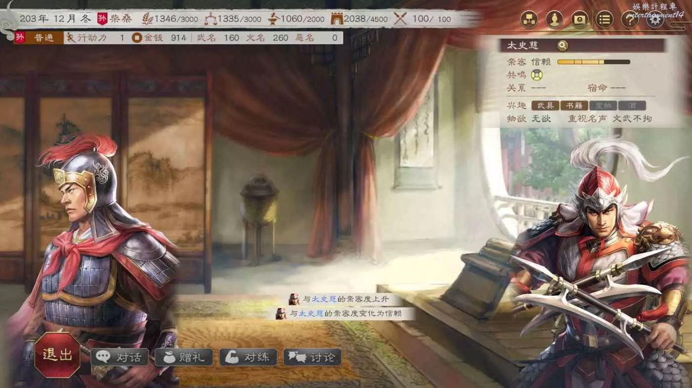 接下2個月用空閒的時間與太史慈將軍拉拉家常,畢竟太猛了,打仗的時候我們需要他的説明。