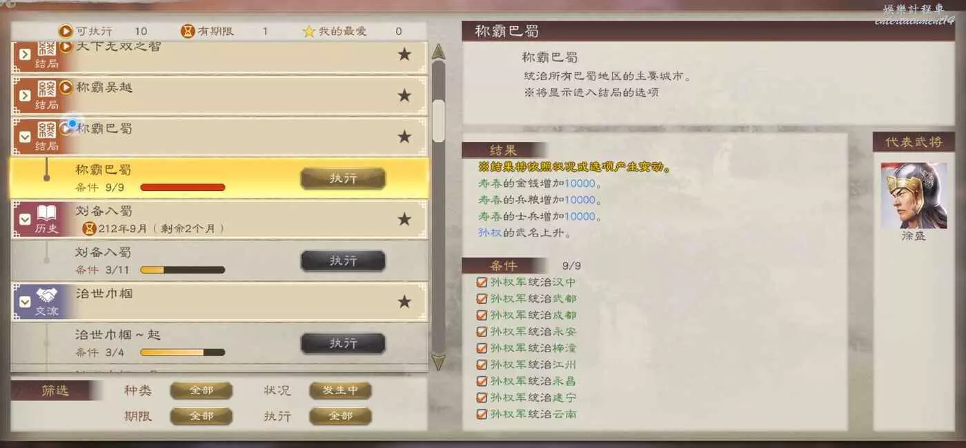 當然此時我們也已經達成了稱霸巴蜀結局的條件。