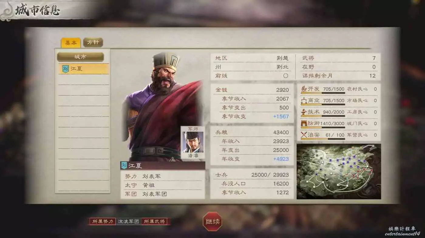 雖然與我們關係不大,但是後續二袁被幹掉之後荊襄就有危險了,我們得趁早拿下江夏,畢竟劉表的兵力可比曹操弱多了。事已至此,先修牆吧。