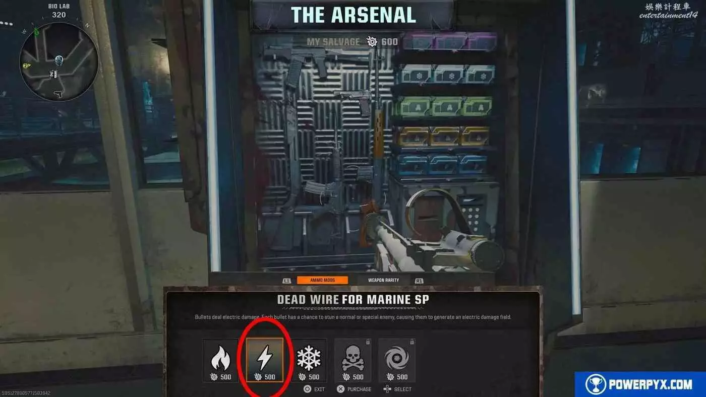 首先花費500廢料在軍械庫製作【致命電流】,就在面對強化機往左轉的位置。給武器附帶致命電流屬性。